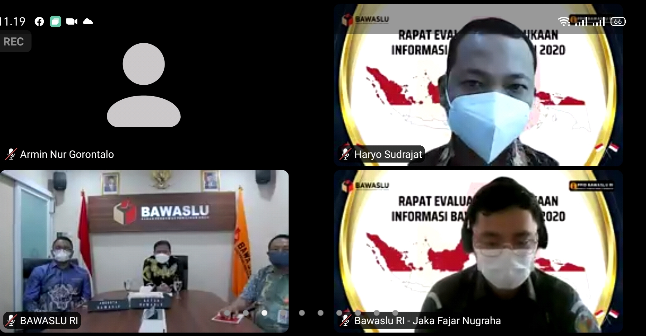 GORONTALO -Â Ketua Bawaslu Provinsi Gorontalo J. Umar didampingi Koordinator Sub Bagian Humas dan Hubal Sri Yanti Tangkudung mengikuti Rapat Evaluasi Keterbukaan Informasi Publik Bawaslu Tahun 2020, yang sekaligus dirangkaikan dengan pemberian penghargaan Keterbukaan Informasi Publik kepada Bawaslu Provinsi, yang dilaksanakan secara daring, pada kamis, (28/01/2021).