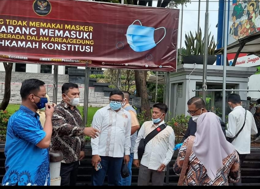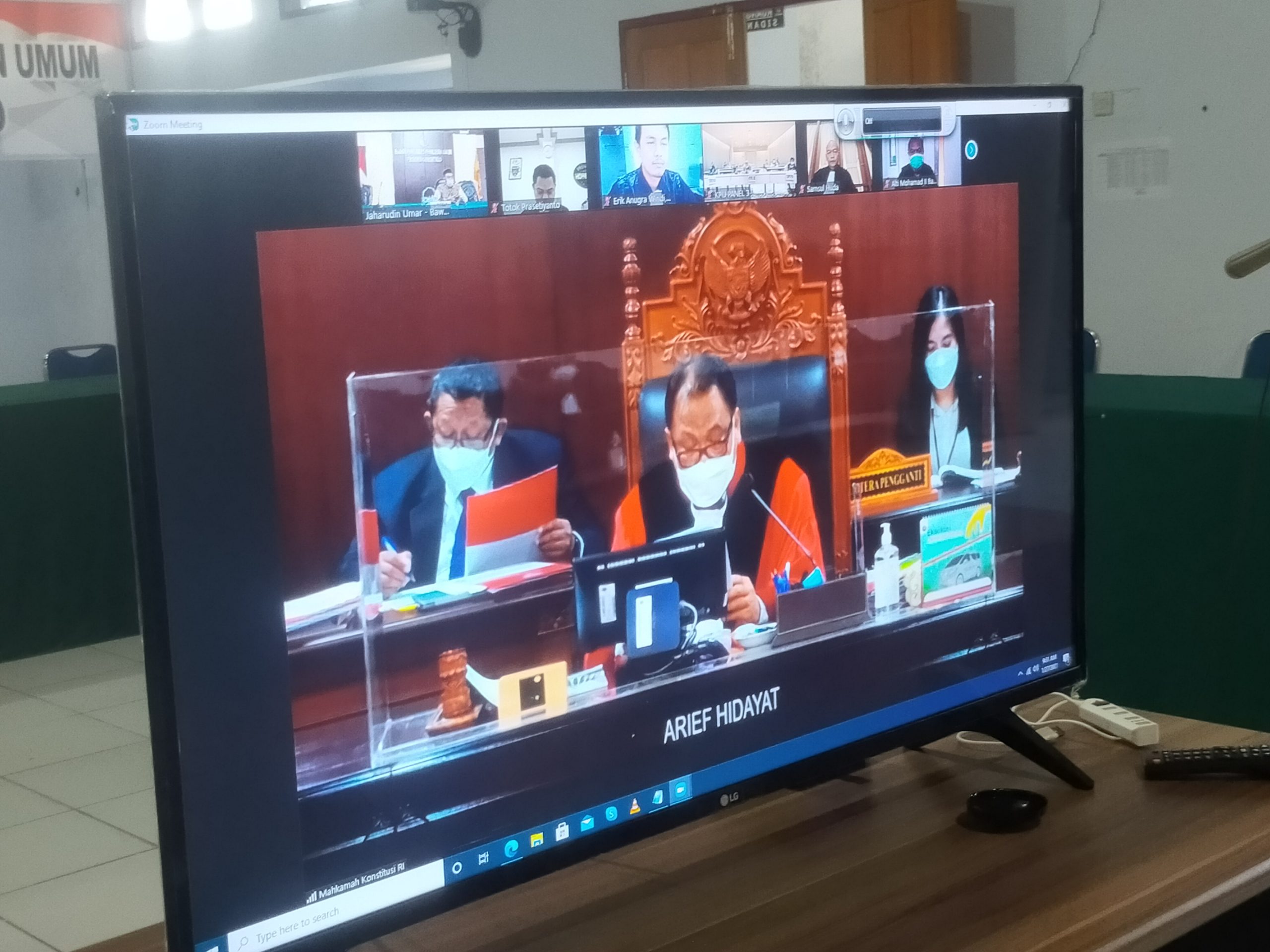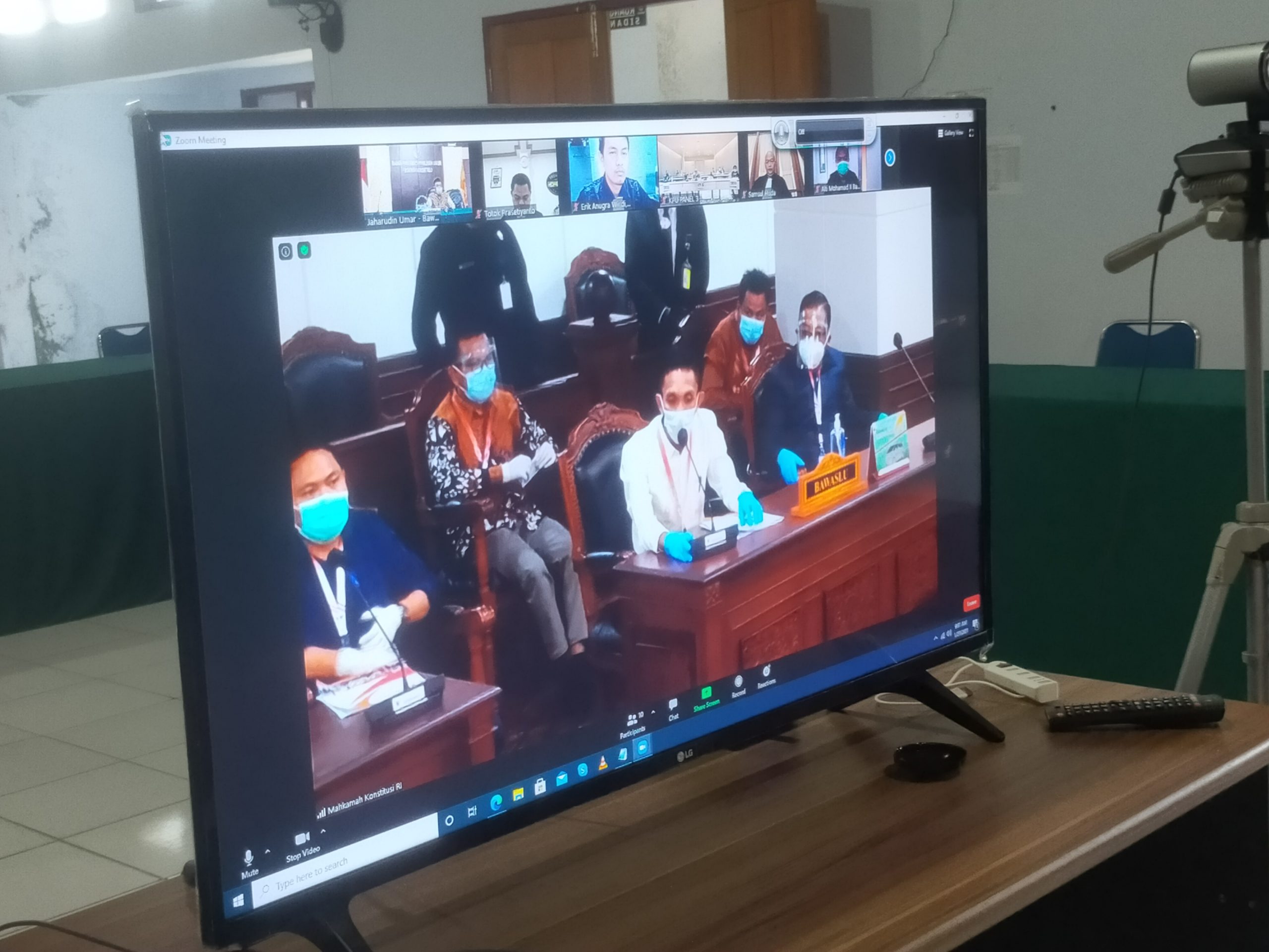 Sementara itu, Ketua Bawaslu Provinsi Gorontalo J. Umar, bersama pejabat struktural dan fungsional mengikuti sidang pendahuluan secara daring bertempat diruang rapat lantai III Kantor Bawaslu Provinsi Gorontalo, oleh karena kondisi yang tidak memungkinkan untuk hadir bersama secara langsung di Mahkamah Konstitusi, mengingat penegakan protokol pencegahan covid-19.