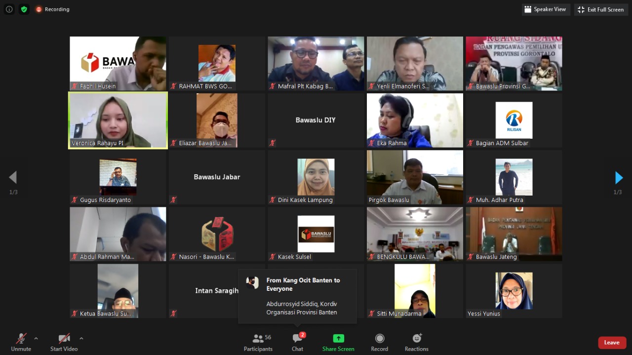 Badan Pengawas Pemilihan Umum (Bawaslu) Provinsi Gorontalo menghadiri rapat pembahasan identifikasi kebutuhan Standar Operasional Prosedur (SOP) tata kerja Bawaslu Provinsi dan Kabupaten/Kota dalam Pengawasan, Penanganan Pelanggaran dan Penyelesaian Sengketa Pemilihan , yang dilakukan oleh Bawaslu RI secara virtual, Rabu (22/07/2020)