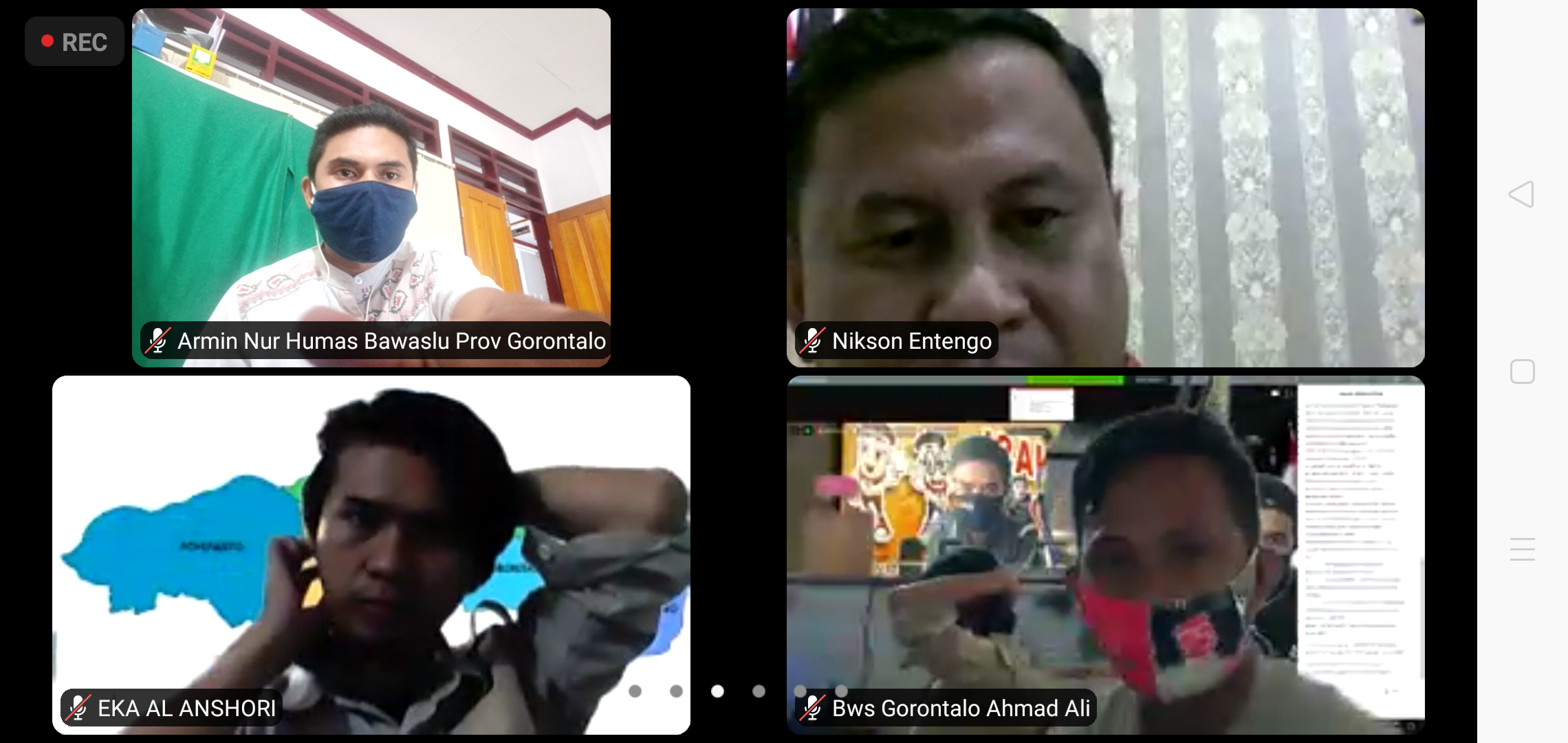 Bawaslu Provinsi Gorontalo menggelar rapat bersama Bawaslu Kabupaten yang melaksanakan Pilkada Tahun 2020, dalam rangka evaluasi penerapan dan optimalisasi penegakan protokol kesehatan sebagai upaya pencegahan terhadap penularan covid-19, khsusnya di lingkungan Bawaslu Provinsi dan Kabupaten/Kota, melalui daring pada Jumat, (11-09-2020).