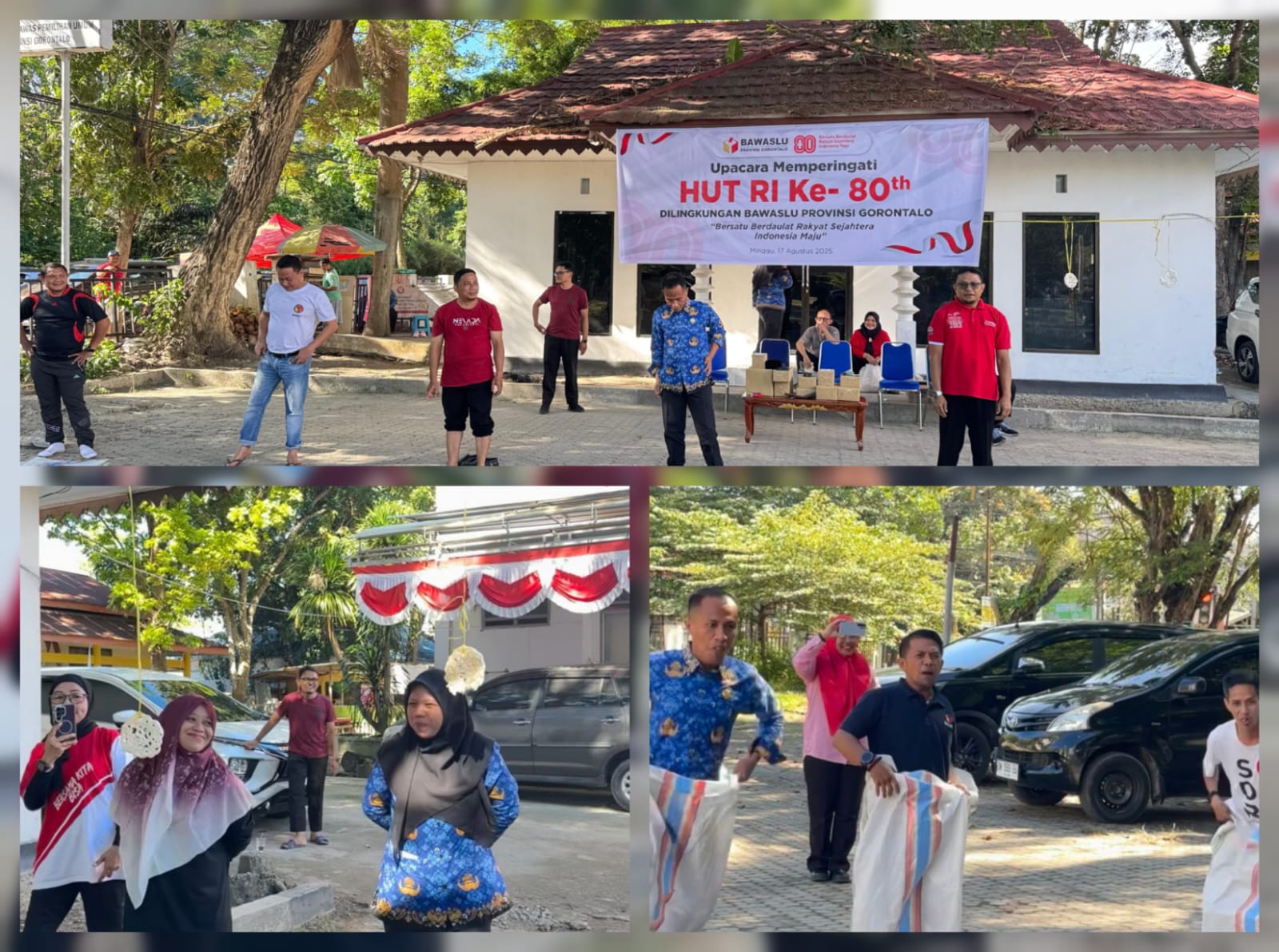 Gorontalo — Dalam rangka memeriahkan Hari Ulang Tahun ke-80 Republik Indonesia, Bawaslu Provinsi Gorontalo menggelar berbagai lomba usai pelaksanaan upacara peringatan HUT RI ke-80 yang berlangsung di halaman kantor Bawaslu Provinsi Gorontalo, Minggu (17/08/2025). Kegiatan ini diikuti antusias oleh seluruh jajaran Bawaslu Provinsi Gorontalo, mulai dari pimpinan hingga staf sekretariat.