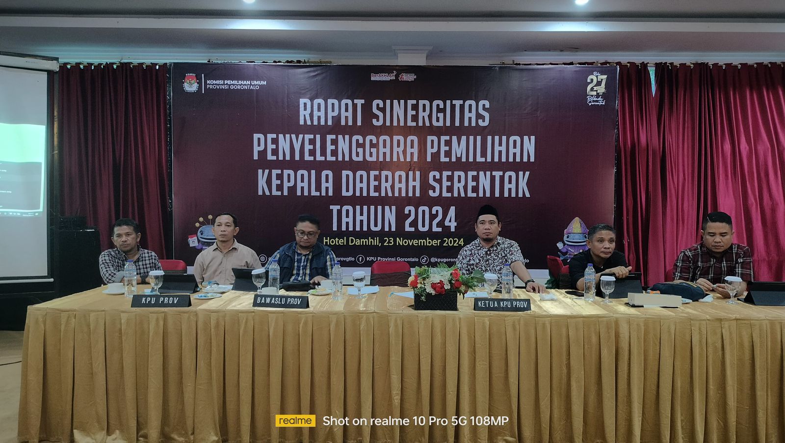 Gorontalo – Ketua Bawaslu Provinsi Gorontalo Idris Usuli bersama Anggota Moh. Fadjri Arsyad menghadiri Rapat Sinergitas Penyelenggara Pemilihan Kepala Daerah (Pilkada) Serentak 2024 yang diadakan oleh KPU Provinsi Gorontalo di Hotel Damhil, Kota Gorontalo, Sabtu (23/11/2024). Acara tersebut bertujuan memperkuat kolaborasi antar-penyelenggara untuk menjamin suksesnya pelaksanaan Pilkada.