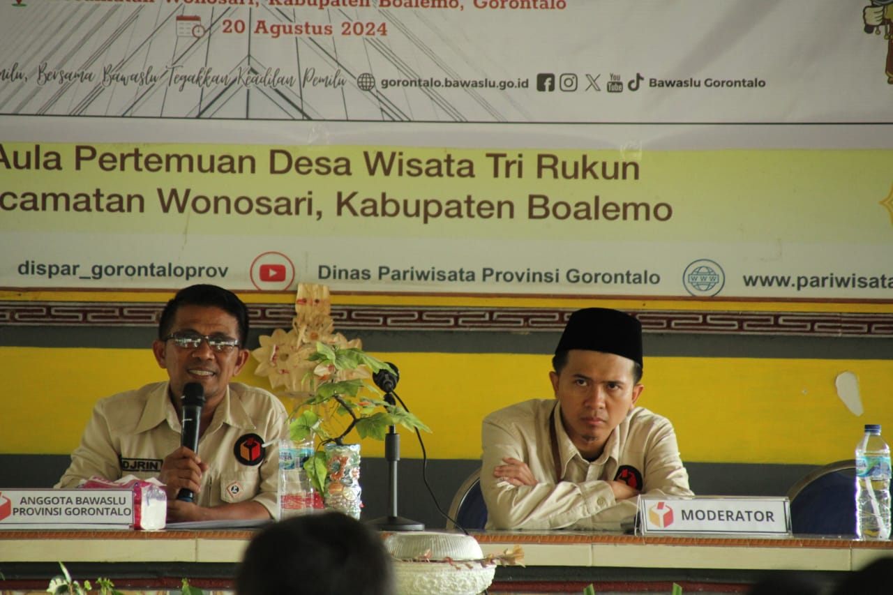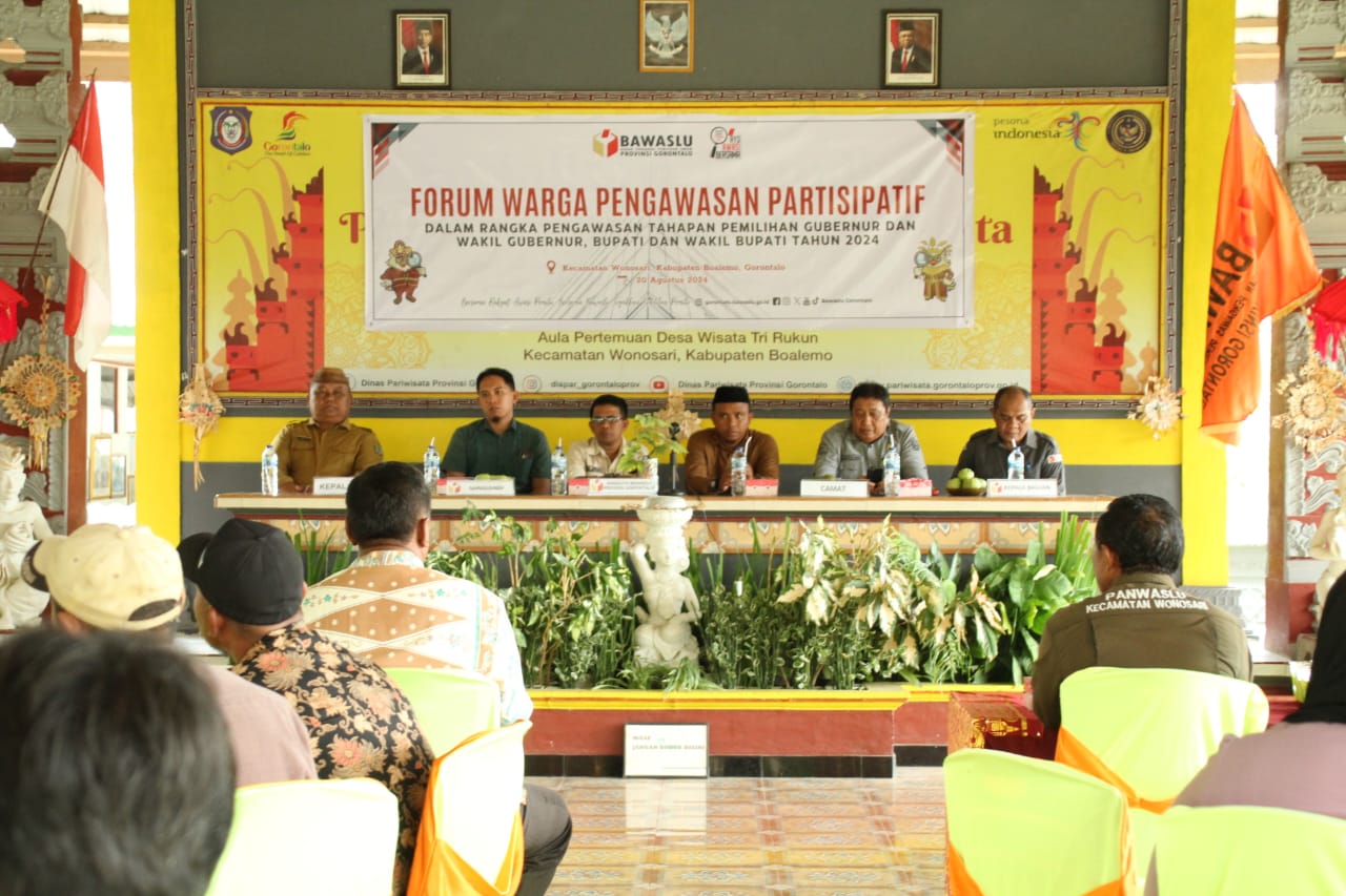 Badan Pengawas Pemilihan Umum (Bawaslu) Provinsi Gorontalo melaksanakan Forum Warga Pengawasan Partisipatif di Kecamatan Wonosari, pada Selasa (20/08/2024)[/caption]