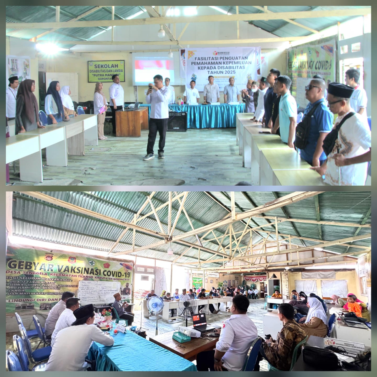 Gorontalo – Badan Pengawas Pemilihan Umum (Bawaslu) Provinsi Gorontalo menggelar kegiatan Fasilitasi Penguatan Pemahaman Kepemiluan kepada Disabilitas Tahun 2025 di PKBM Inklusi Putra Mandiri, Desa Tenggela, Kecamatan Tilango, Kabupaten Gorontalo, Rabu (10/9/2025). Kegiatan ini dibuka langsung oleh Ketua Bawaslu Provinsi Gorontalo, Idris Usuli, dan dihadiri jajaran anggota Bawaslu Provinsi, yakni Moh Fadjri Arsyad, Lismawy Ibrahim, Wahyudin Akili, serta Kepala Sekretariat Bawaslu Provinsi Gorontalo, Nikson Entengo.