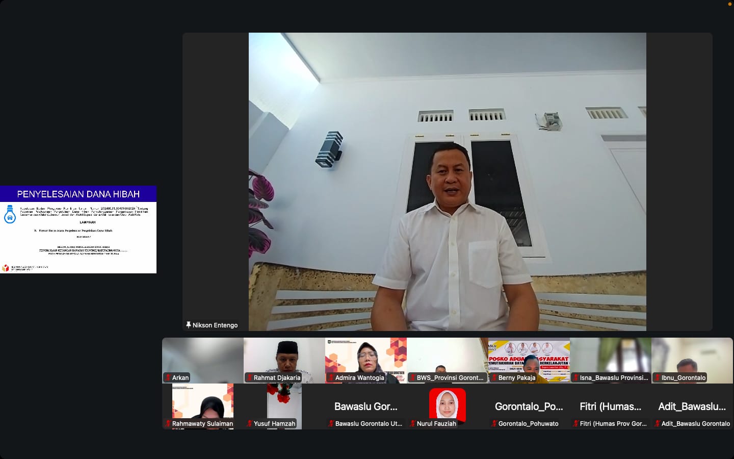 Gorontalo – Bawaslu Provinsi Gorontalo menggelar Rapat Koordinasi dan Evaluasi Laporan Pertanggungjawaban Hibah pada Pemilihan Serentak Tahun 2024 serta pembahasan langkah-langkah persiapan akhir tahun 2025. Kegiatan ini berlangsung secara daring melalui Zoom meeting dengan melibatkan Kepala dan Koordinator Sekretariat Bawaslu Kabupaten/Kota se-Provinsi Gorontalo, Jumat (05/09/2025).