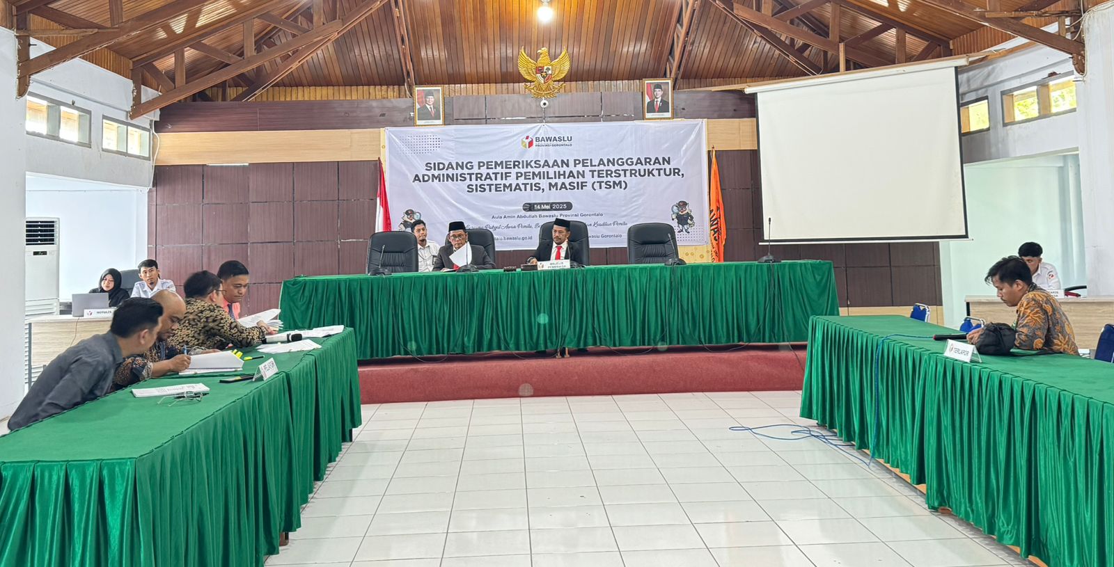 Sidang dipimpin langsung oleh Moh Fadjri Arsyad dan John Hendri PuPurbaKeduanya bertindak sebagai majelis pemeriksa yang akan menentukan apakah terdapat pelanggaran administratif yang memenuhi unsur TSM dalam pelaksanaan Pemungutan Suara Ulang (PSU) Pilbup Gorontalo Utara 2024.