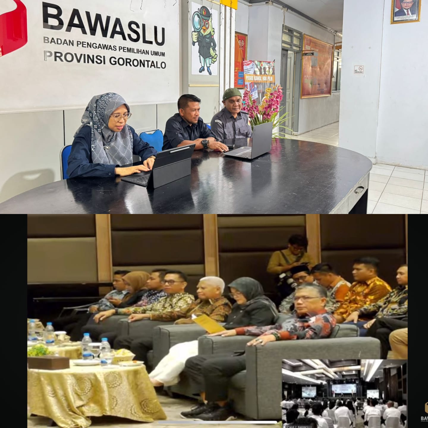 Gorontalo — Anggota Bawaslu Provinsi Gorontalo Moh Fadjri Arsyad dan Lismawy Ibrahim bersama Kepala Bagian Pengawasan mengikuti Kick-off Pendidikan Pengawas Partisipatif bertema “Berfungsi dan Bergerak untuk Pemilu 2029 yang Bermartabat†yang dilaksanakan secara daring melalui Zoom Meeting pada Senin (07/07/2025).