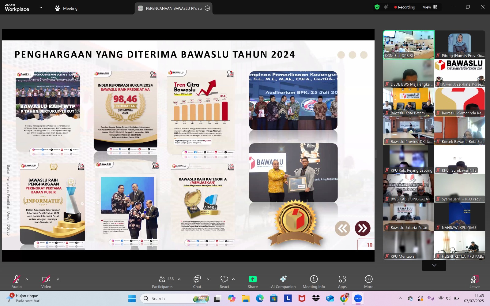 Gorontalo — Anggota Bawaslu Provinsi Gorontalo, Moh Fadjri Arsyad dan Lismawy Ibrahim, mengikuti Rapat Dengar Pendapat (RDP) bersama Komisi II DPR RI yang digelar secara virtual melalui Zoom Meeting, Senin (07/07/2025). Rapat ini membahas laporan keuangan tahun anggaran 2024 serta rancangan anggaran dan rencana kerja untuk tahun 2026.