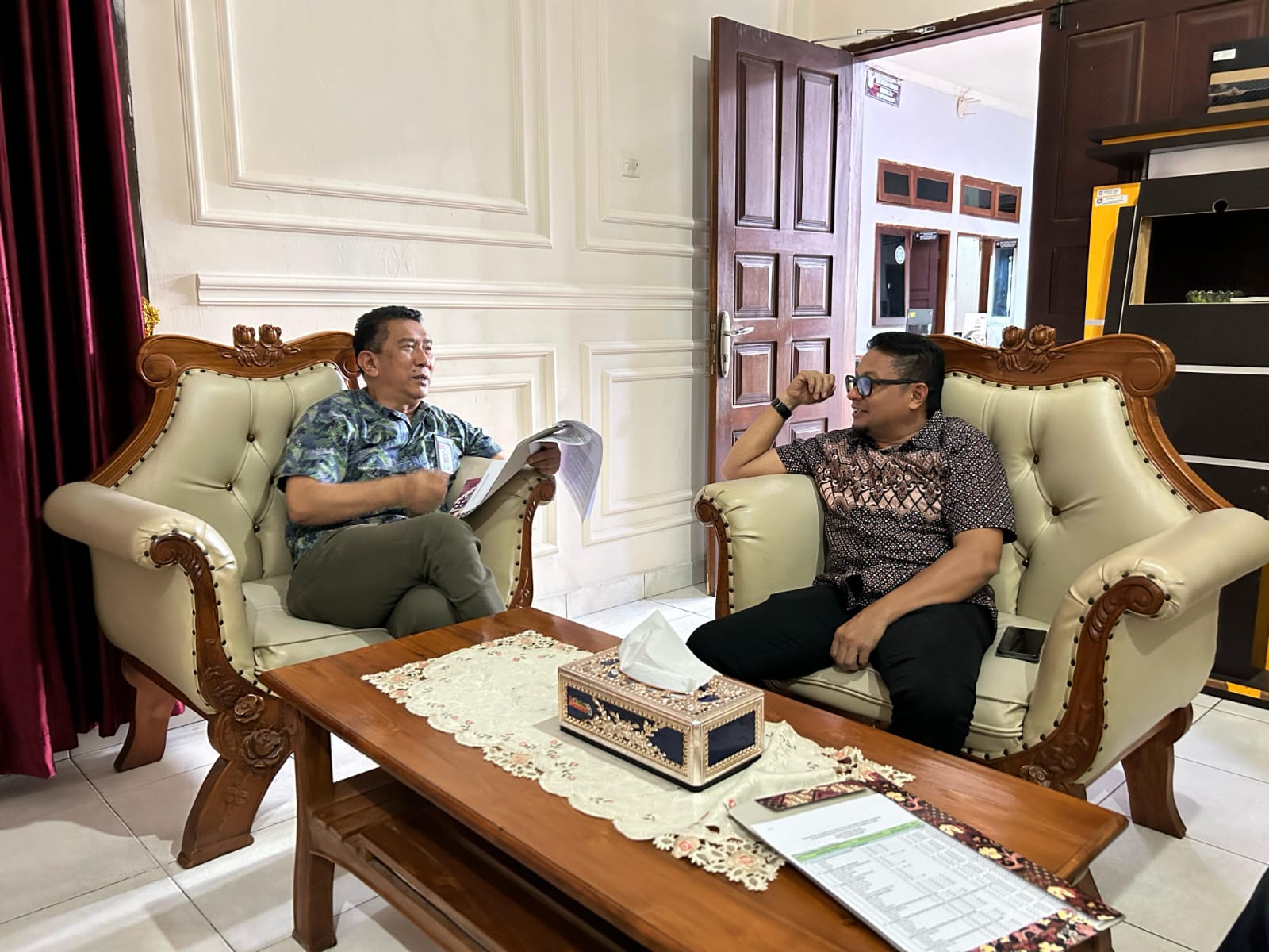 Ketua Bawaslu Provinsi Gorontalo Idris Usuli serta Kepala Sekretariat Bawaslu Provinsi Gorontalo Nikson Entengo saat melakukan koordinasi dengan Kesbangpol Jumat (21/03/2025)[/caption]