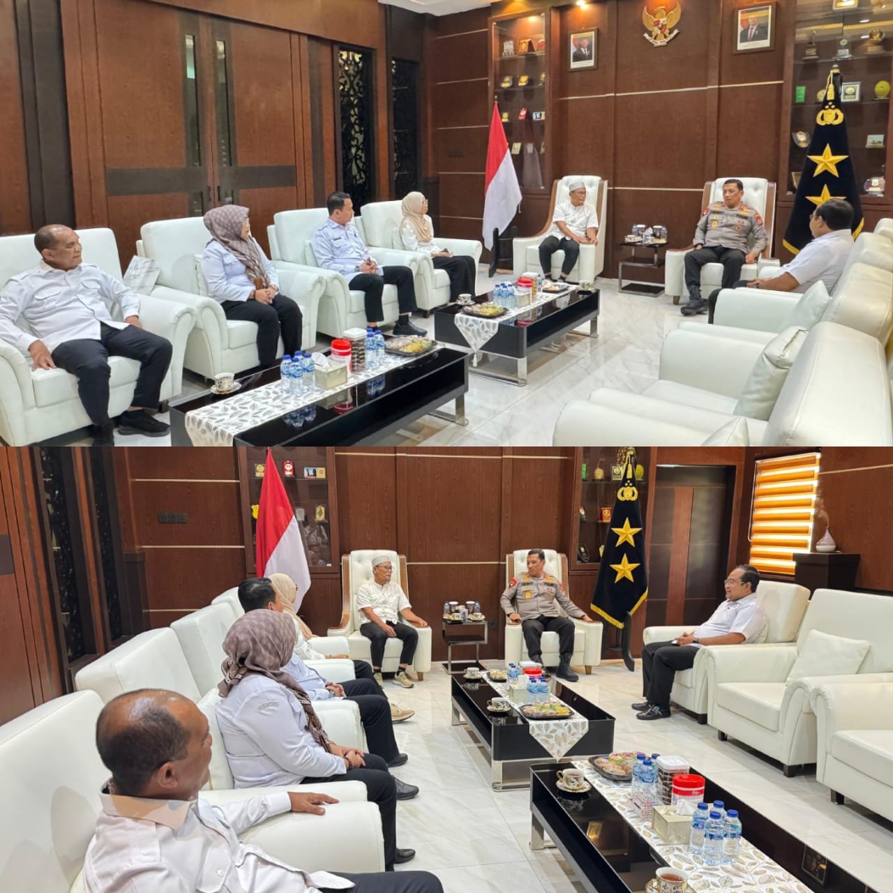 Kunjungan tersebut disambut langsung oleh Kapolda Gorontalo, Irjen Pol. R Eko Wahyu Prasetyo, yang turut didampingi oleh Direktur Reserse Kriminal Umum (Dirreskrimum), Kombes Pol. Yos Guntur Yudi Fauris Susanto. Dalam suasana penuh kehangatan dan komitmen bersama, kedua institusi membahas pentingnya kerja sama dalam menjaga integritas pelaksanaan Pemilu dan Pemilihan Kepala Daerah kedepan.