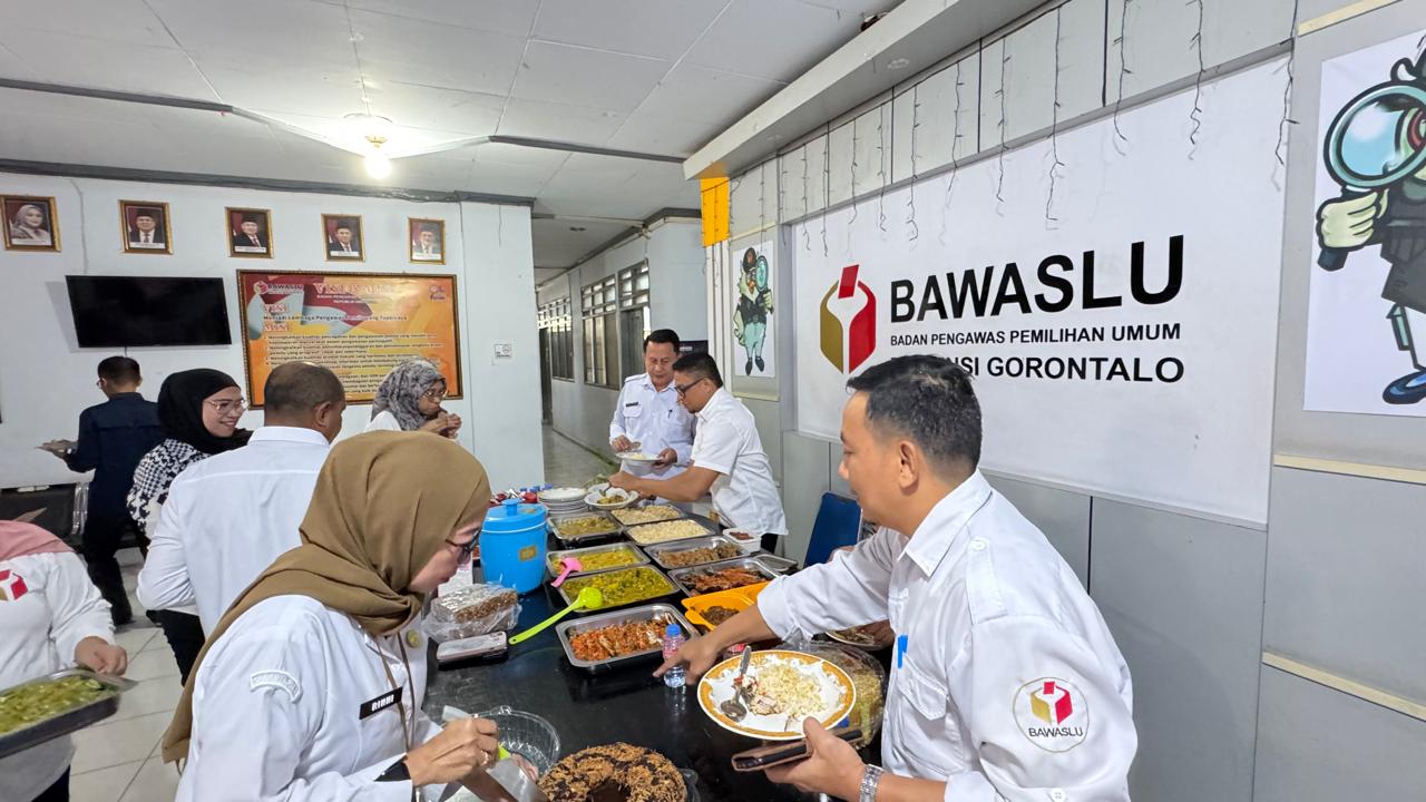 Gorontalo – Dalam upaya menumbuhkan semangat kebersamaan dan kekompakan di lingkungan kerja, Bawaslu Provinsi Gorontalo menggelar acara makan-makan bersama di Kantor Bawaslu Provinsi Gorontalo pada Rabu (25/06/2025). Kegiatan ini merupakan hasil inisiatif bersama dan partisipasi seluruh pegawai, yang berlangsung penuh kehangatan dan kebersamaan.