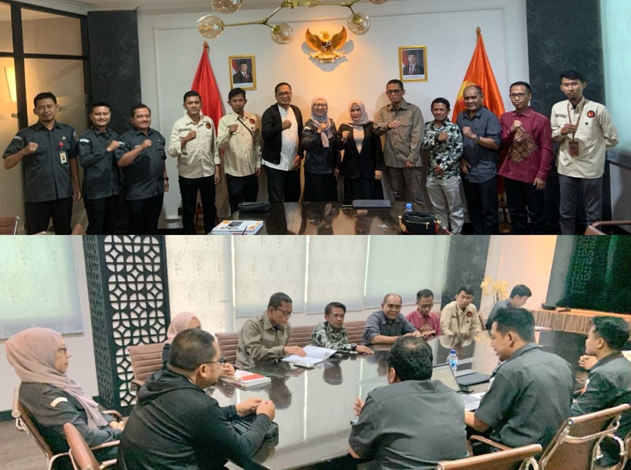 Jakarta - Bawaslu Provinsi Gorontalo serahkan Laporan Layanan Informasi Publik (LIP) pasca Pemilihan Serentak 2024 di Bawaslu RI, Senin (24/02/2025). Penyerahan dilakukan oleh Anggota Bawaslu Provinsi Gorontalo, John Hendri Purba dan Moh Fadjri Arsyad, serta jajaran Sekretariat.