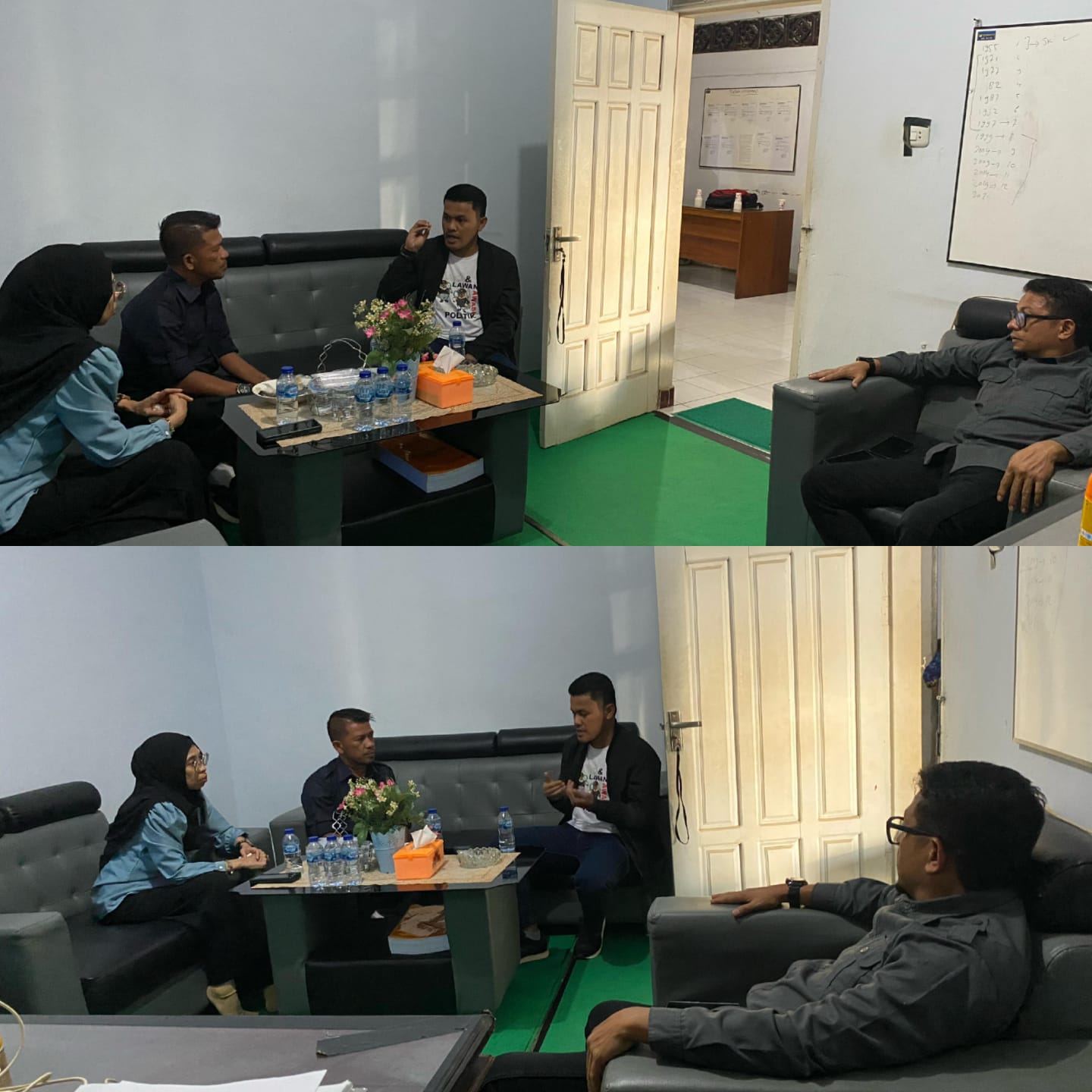 Idris Usuli bersama Moh. Fadjri Arsyad dan Lismawy Ibrahim saat hadiri rapat di Kantor Bawaslu Gorontalo Utara, Senin (28/04/2025)[/caption]