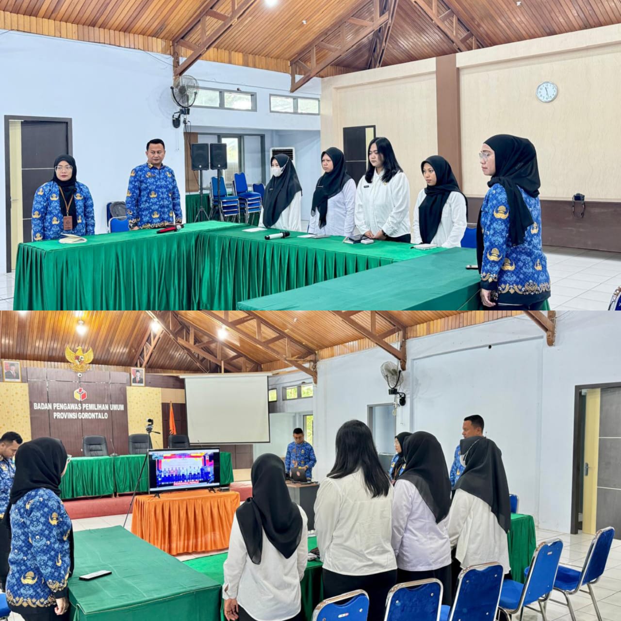 GORONTALO — Kepala Sekretariat Bawaslu Provinsi Gorontalo Nikson Entengo yang didampingi Pejabat Struktural dan Fungsional Bawaslu Provinsi Gorontalo hadiri Via Zoom kegiatan Penerimaan dan Pengarahan CPNS Bawaslu Tahun Anggaran 2024, Senin (02/06/2025) yang diselenggaran oleh Bawaslu RI.