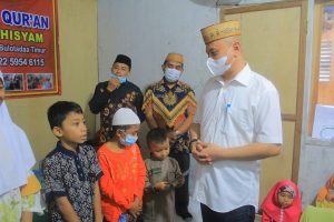 Nikson Entengo saat berinteraksi dengan anak-anak di Panti Asuhan Thoriqul Hisyam dan menguji beberapa santri untuk menghapalkan Alqur'an Foto: Reynaldi Yuarlemen[/caption]