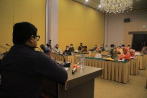 Anggota Bawaslu Provinsi Gorontalo yang mengkoordinir divisi Hukum, Humas dan Data Informasi Idris Usuli memberikan materi “Media Sosial Untuk Pengawasan Partisipatif†pada sesi pertama di hari keempat pada kegiatan Sekolah Kader Pengawas Paritisipatif (SKPP) Tingkat Menengah di Provinsi Gorontalo yang bertempat di Hotel Grand-Q Kota Gorontalo, Senin (18/10/2021).