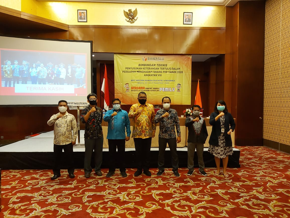 Kordiv Hukum, Humas dan Data Informasi Idris Usuli menghadiri Binbingan Teknis Penyusunan keterangan tertulis dalam persipaan menghadapi sidang PHP tahun 2020 di Best Western Mangga Dua Hotel & Residence Jakarta Pusat Jumat, (20/11/2020).