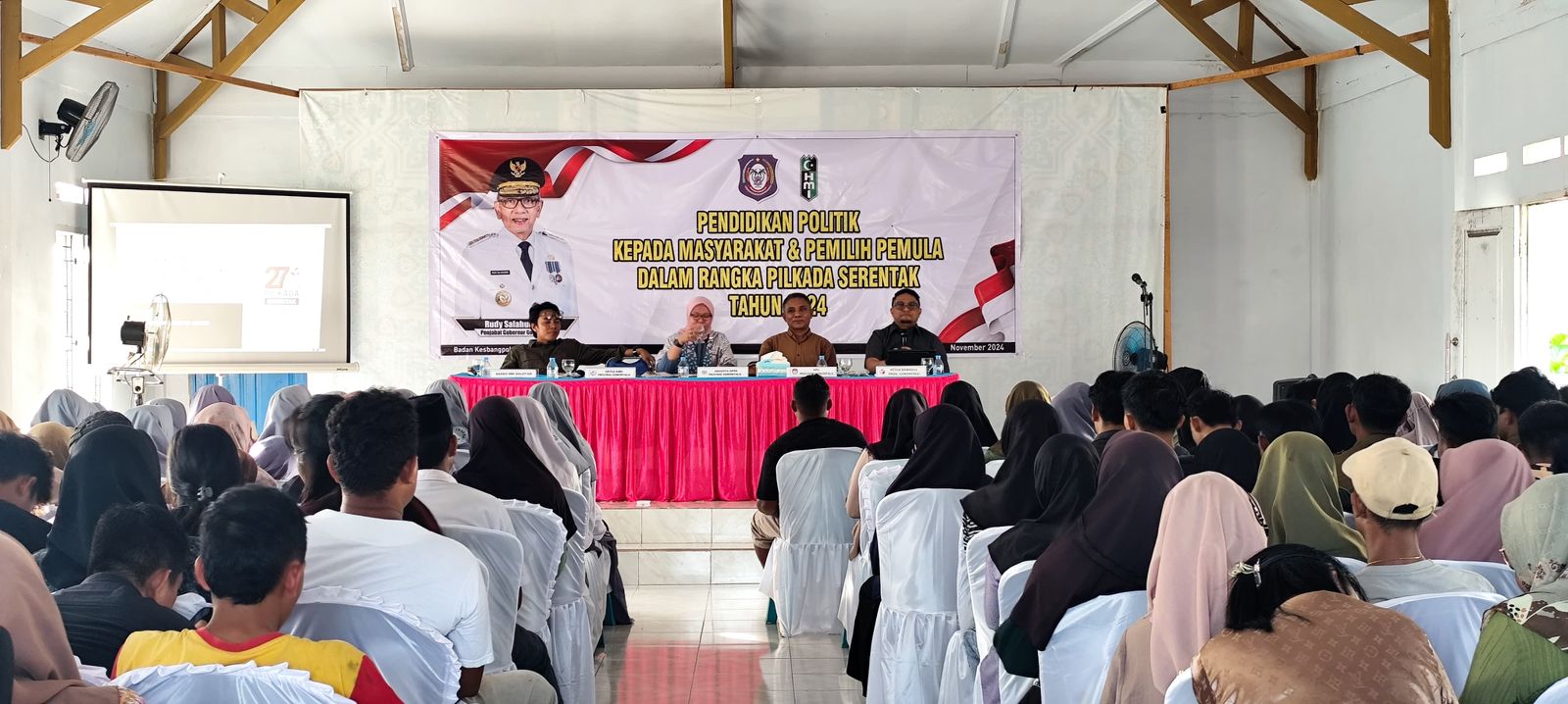 Gorontalo – Ketua Badan Pengawas Pemilu (Bawaslu) Provinsi Gorontalo, Idris Usuli, mengajak masyarakat dan pemilih pemula untuk berperan aktif dalam menyukseskan Pemilihan Kepala Daerah (Pilkada) 2024. Seruan ini disampaikan Idris saat menjadi narasumber dalam acara Pendidikan Politik bagi Masyarakat dan Pemilih Pemula yang digelar oleh Kesatuan Bangsa dan Politik (Kesbangpol) Provinsi Gorontalo di Aula BPU, Kantor Camat Kabila Bone, Kabupaten Bonebolango, Selasa (5/11/2024).