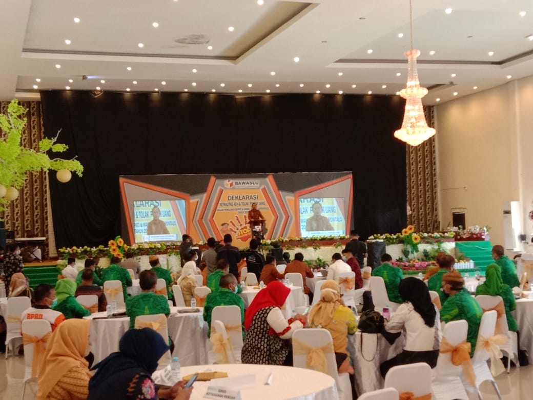 Kegiatan yang dibuka oleh pejabat Bupati Kabupaten Gorontalo Herman Walangadi diisi dengan penandatangan dan deklarasi secara langsung oleh pasangan calon tentang komitmen tolak politik uang dan netralitas ASN dilingkungan Pemerintah Daerah Kabupaten Gorontalo.