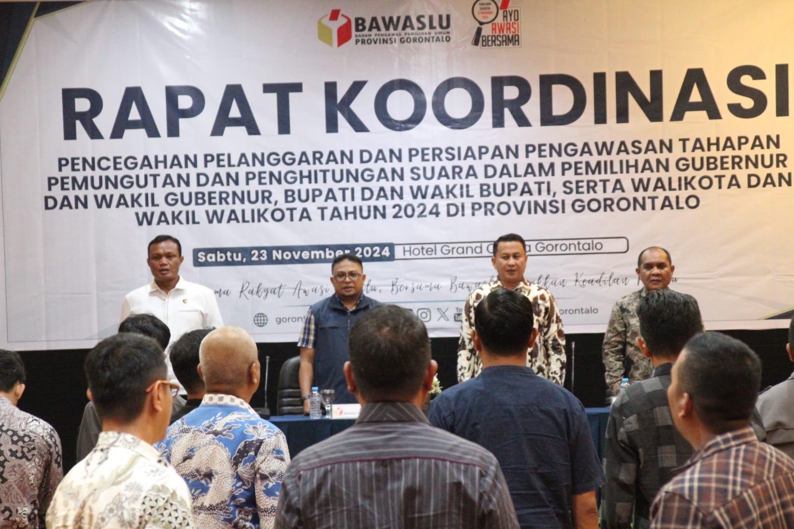 Gorontalo – Badan Pengawas Pemilihan Umum (Bawaslu) Provinsi Gorontalo mengintensifkan upaya pengawasan dan pencegahan pelanggaran jelang tahapan pemungutan dan penghitungan suara pada Pemilihan 2024. Langkah ini dipertegas melalui Rapat Koordinasi Pencegahan Pelanggaran dan Persiapan Pengawasan, yang digelar di Hotel Grand Q, Kota Gorontalo, pada Sabtu (23/11/2024).