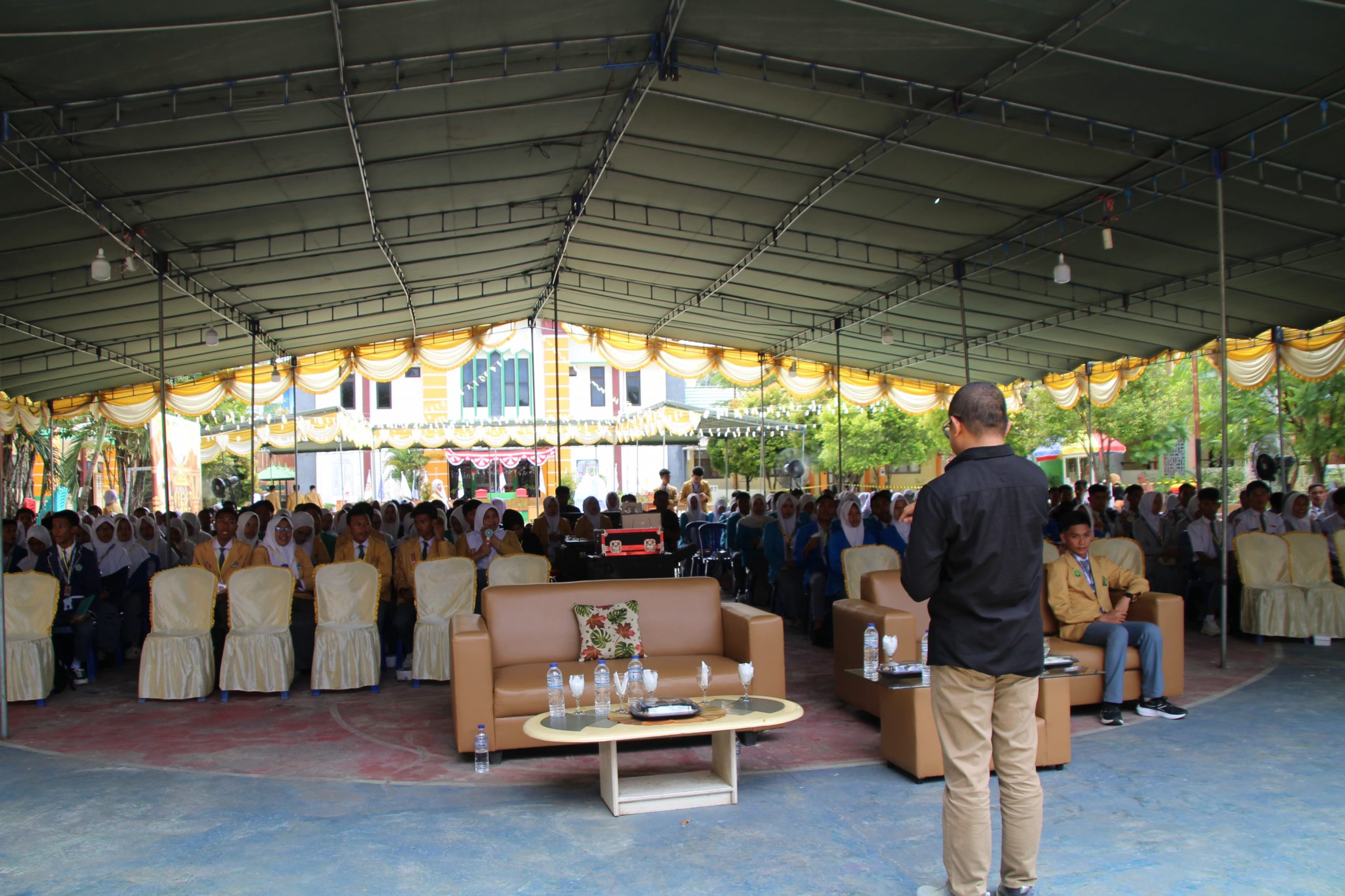 Idris Usuli saat memberikan Sosialisasi dalam kegiatan Osis Festival yang diselenggarakan oleh OSIS MAN 1 Kota Gorontalo, Sabtu (13/09/2025).[/caption]