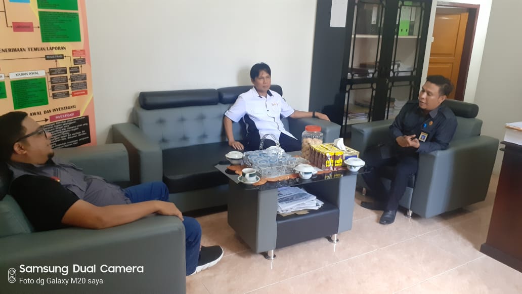 Anggota Bawaslu Provinsi Gorontalo Idris Usuli Samping Kiri memakai rompi Coklat saat berbincang dengan ketua Bawaslu Kabupaten Pohuwato terkait Persiapan Persidangan Administari, Pohuwato 03/03/2020[/caption]