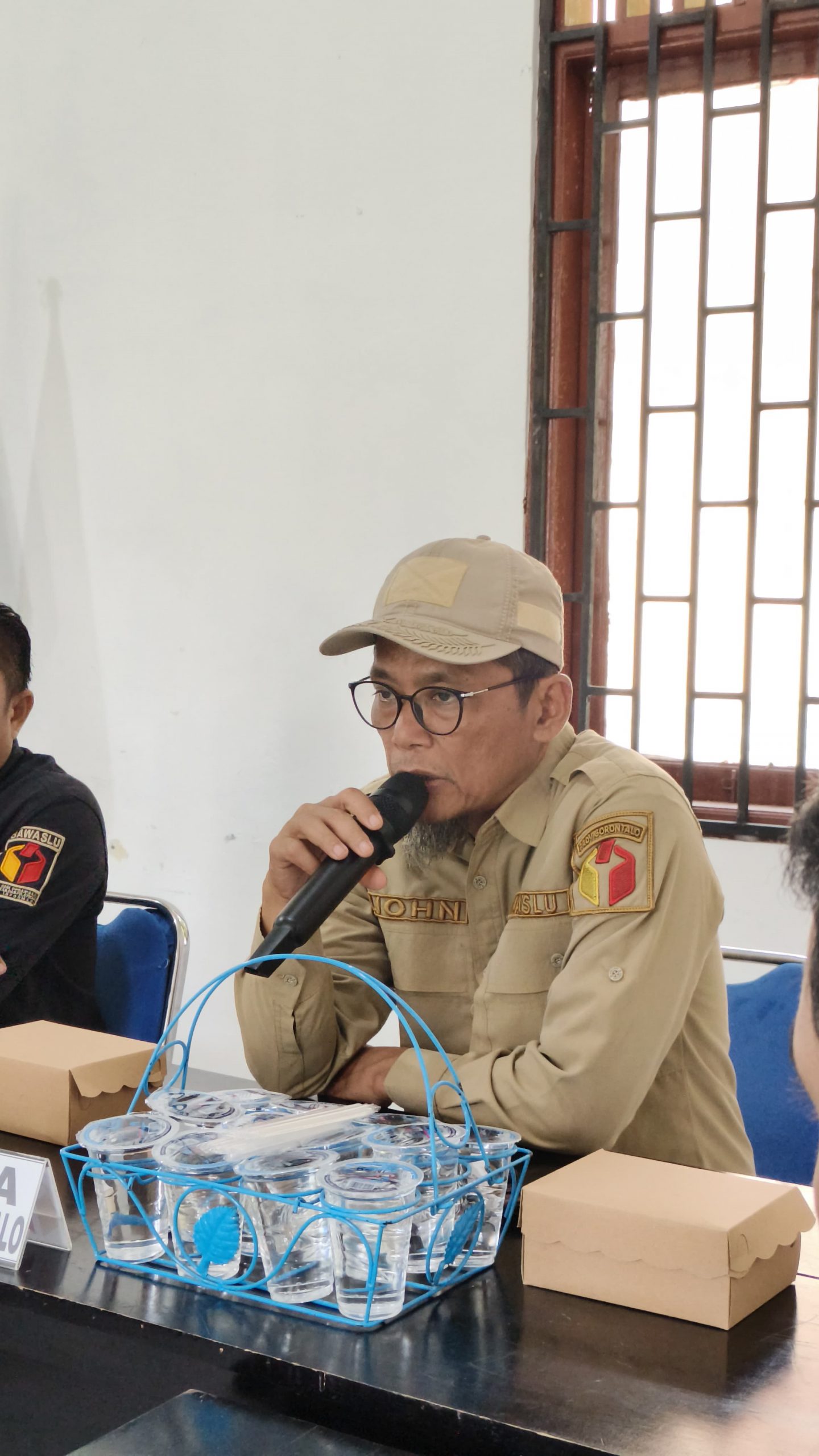 John Hendri Purba saat memberikan Penguatan di Bawaslu Kab. Pohuwato, Selasa (12/08/2025)[/caption]