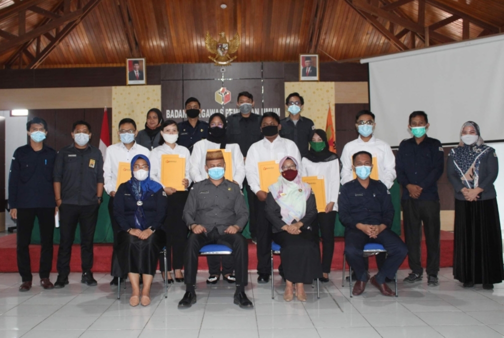 Kepala Sekretariat Bawaslu Provinsi Gorontalo memberikan arahan serta penyerahahan SK CPNS Bawaslu formasi Angkatan IV tahun 2019 pada kegiatan Penyambutan CPNS Bawaslu Angkatan IV yang ditempatkan di Sekretariat Bawaslu Provinsi Gorontalo bertempat di Gedung lantai 3 Kantor Bawaslu Provinsi Gorontalo pada Senin, (01/02/2021).