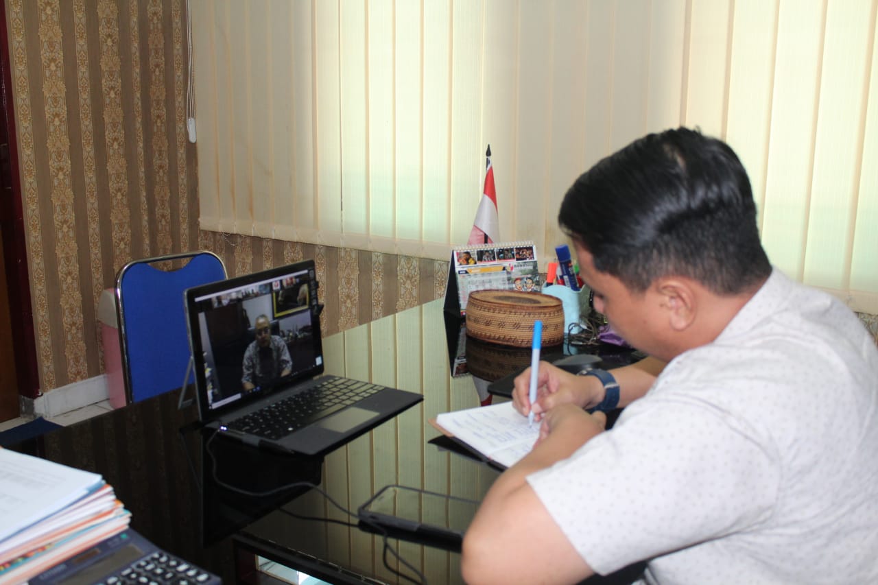 Kepala Sekretariat Bawaslu Provinsi Gorontalo Nikson Entengo melakukan Rapat Bersama dengan Sekjend Bawaslu RI Gunawan Suswantoro dan Sejumlah Kasek Bawaslu Provinsi Se- Indonesia Melalui Vidcon. Kamis (19/03/2020)/Foto: Humas Bawaslu Provinsi Gorontalo[/caption]