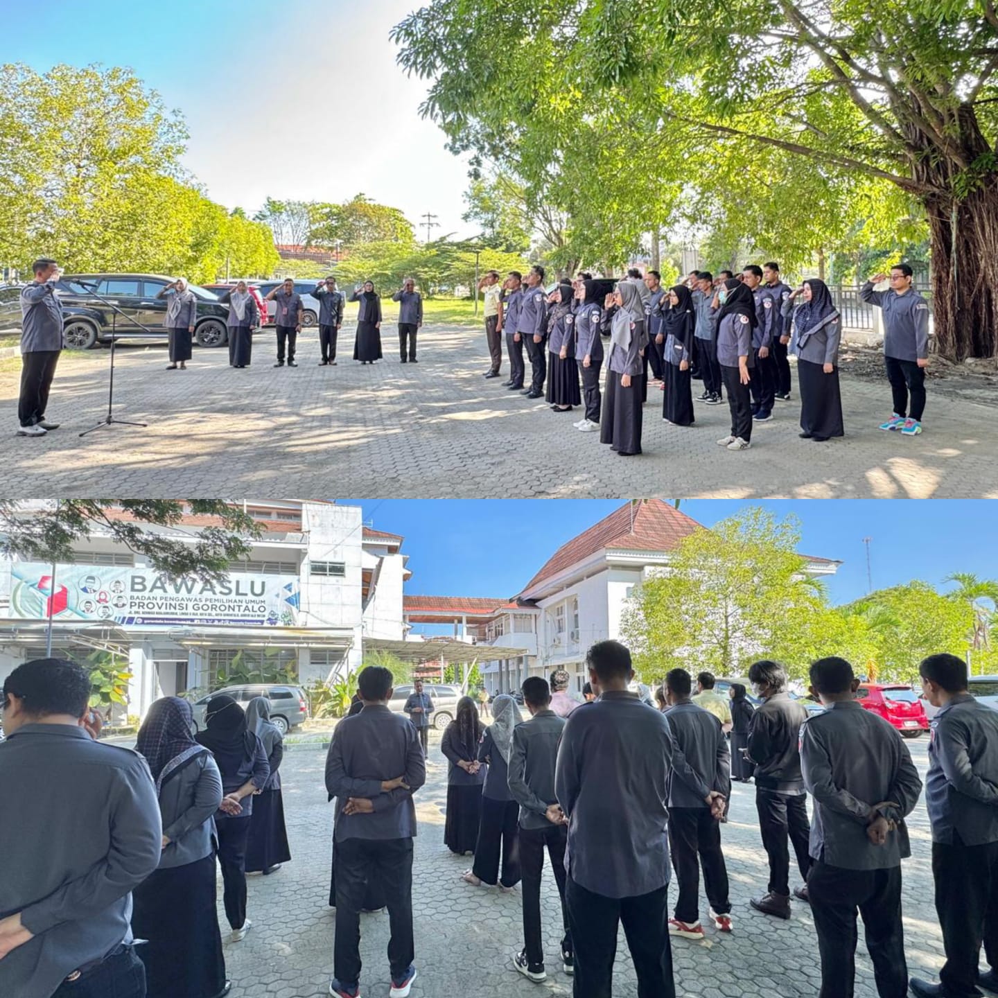 Pegawai Bawaslu Provinsi Gorontalo saat Apel Rutin di Halaman kantor, Senin (5/5/2025)[/caption]