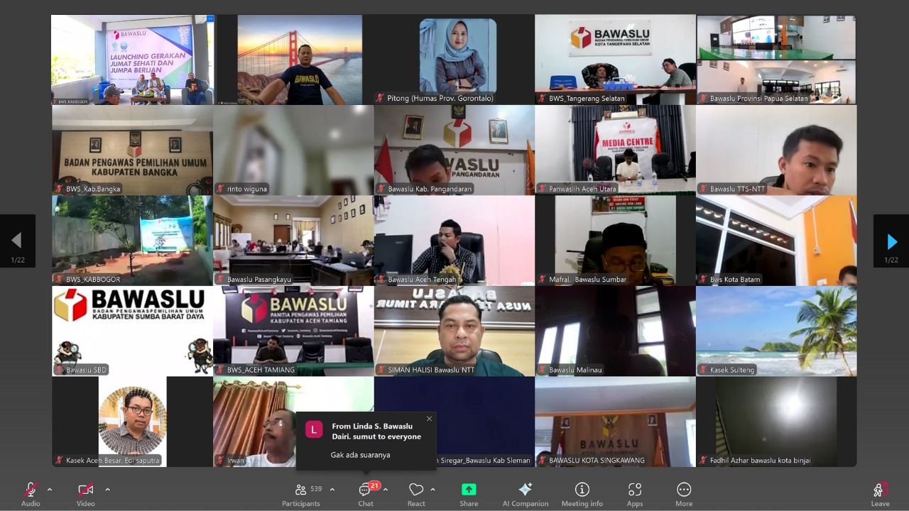 Gorontalo – Bawaslu Provinsi Gorontalo menyatakan dukungannya terhadap peluncuran Program Jumat Sehati (Jumat Menjaga Tubuh, Sehat Hati, Kuat Iman) dan Jumpa Berlian (Jujur, Menanam, Pelihara, Amankan, Bersih, Lingkungan dan Alam Nyata) yang digagas oleh Bawaslu RI. Kegiatan ini dilaksanakan secara daring melalui Zoom Meeting pada Jumat (01/08/2025) dan dibuka langsung oleh Anggota Bawaslu RI, Herwyn Malonda.