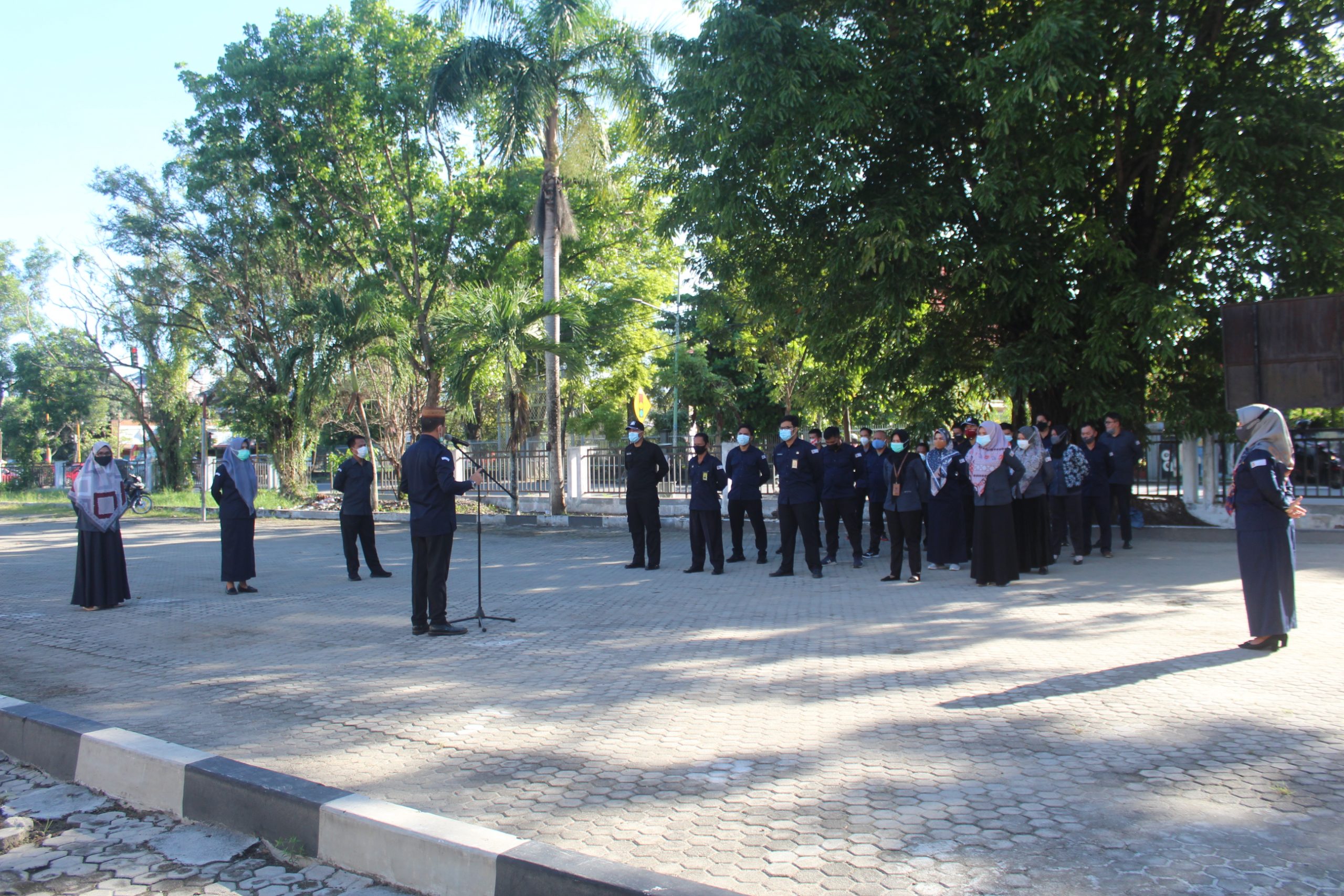 Kepala Sekretariat Bawaslu Provinsi Gorontalo Nikson Entengo memberikan arahan pada apel pagi di Halaman Kantor Bawaslu Provinsi Gorontalo Senin, (11/01/2021).