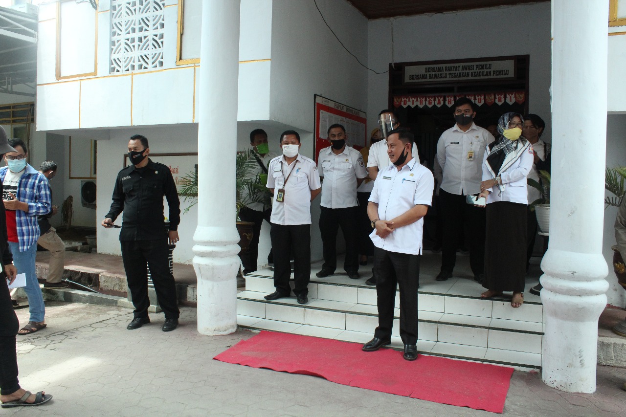 Kepala Sekretariat Bawaslu Provinsi Gorontalo Nikson Entengo Menerima Aksi Damai Mahasiswa HPMIG Cabag Yokyakarta di Halaman Kantor Bawaslu Provinsi Gorontalo Rabu,(09/10/2020).