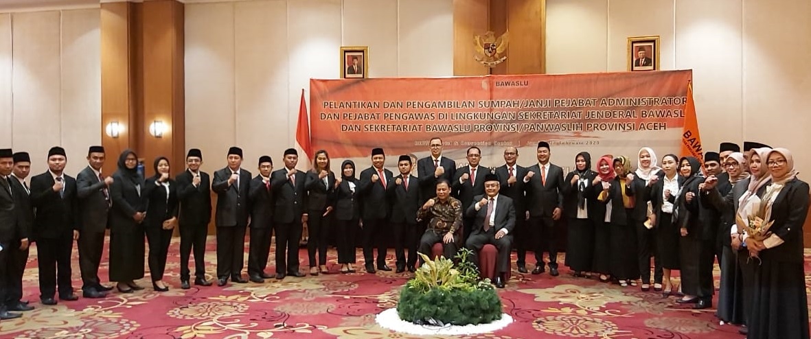 Sekretaris Jenderal Bawaslu Republik Indonesia Gunawan Suswantoro melantik 183 pejabat administrator/pejabat pengawas dilingkungan Bawaslu dan Bawaslu Provinsi seluruh Indonesia bertempat di Jakarta, Jum’at (28/02).
