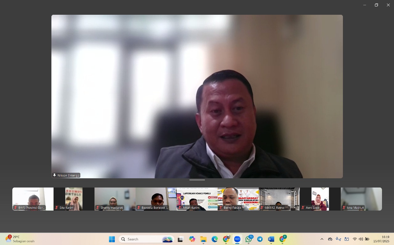Gorontalo – Bawaslu Provinsi Gorontalo menggelar Rapat Evaluasi Pengelolaan Keuangan yang melibatkan jajaran Bawaslu Kabupaten/Kota se-Provinsi Gorontalo, Selasa (15/07/2025). Kegiatan ini dilaksanakan secara daring melalui Zoom Meeting dan menjadi bagian dari upaya peningkatan tata kelola keuangan yang akuntabel dan transparan di lingkungan Bawaslu.