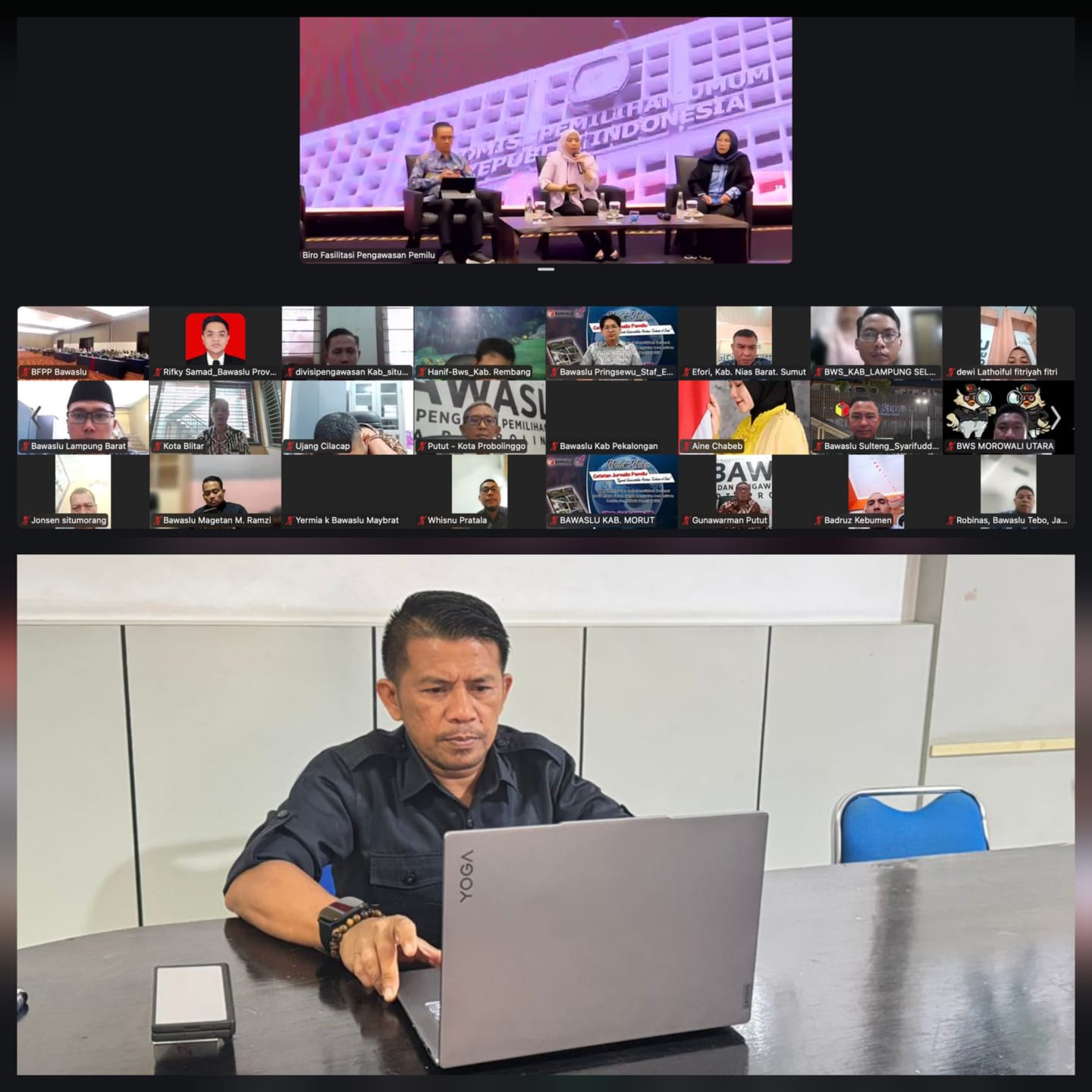 Gorontalo – Anggota Bawaslu Provinsi Gorontalo, Moh Fadjri Arsyad bersama Kepala Bagian Pengawasan Pemilu dan Humas, Ferdy Rus Modanggu dan juga staf Pengawasan menghadiri Rapat Koordinasi Evaluasi Pengawasan Pemutakhiran Data Pemilih Berkelanjutan Tahun 2025 melalui Zoom Meeting. Kegiatan yang digelar Bawaslu RI ini berlangsung di Hotel Hilton Bandung mulai 7 hingga 9 September 2025.