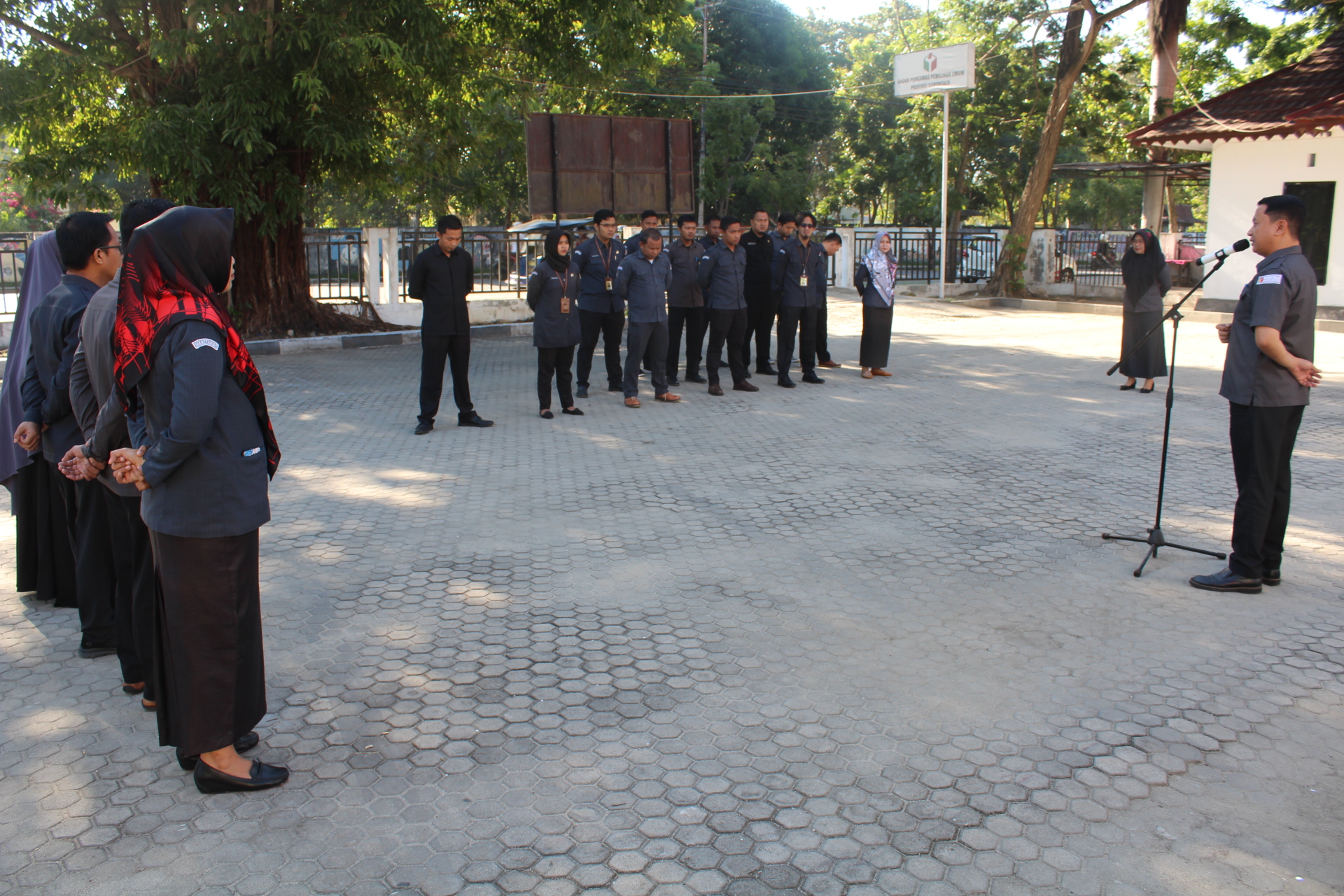 Pimpin Apel Pagi, Kasek Nikson berikan arahan penting terkait dengan antisipasi pencegahan penyebaran virus Covid 19 atau biasa disebut Corona. dan selanjunya terkait pemaksimalan media internal Bawaslu Provinsi Gorontalo. Senin (16/03/2020). Foto/Armin Nur[/caption]
