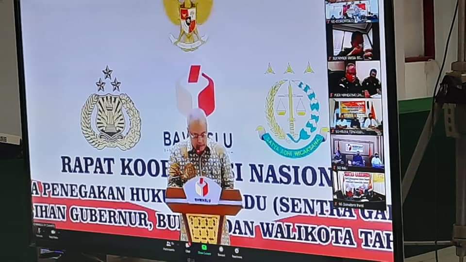 Kegiatan rakornas tersebut dilaksanakan oleh Bawaslu RI bersama Kepolisian Negara Republik Indonesia dan Kejaksaan Agung Republik Indonesia, serta Gakkumdu Provinsi seluruh Indonesia. Dalam sambutannya, Kepala Kepolisian Negara Republik Indonesia yang disampaikan oleh Brigen Pol. Drs. Tatang mengucapkan terima kasih dan apresiasi kepada Bawaslu RI yang telah menyelenggarakan kegiatan ini, forum ini merupakan langkah yang tepat dan positif sebagai sarana untuk menunjukkan tekad dan semangat kita bersama dalam rangka mewujudkan pelaksanaan pemilihan kepala daerah yang demokratis, aman dan lancar. Pemilihan tahun 2020 merupakan pemilihan yang sangat strategis, karena merupakan pemilihan serentak yang terakhir sebelum dilaksanakannya pemilihan serentah nasional yang rencananya akan diselenggarakan bersamaan dengan pemilu pada tahun 2024. Meskipun pelaksanaannya ditengah wabah bencana non alam covid-19, tetap berupaya semoga seluruh tahapan pemilihan tahun 2020 dapat terlaksana dengan baik, yang tentunya dilaksanakan dengan tetap memperhatikan protokol kesehatan, dengan harapan lahirnya pemimpin yang akan membawa masyarakat, daerah, bangsa dan negara ini mencapai cita-cita dan tujuan nasional yang diinginkan. guna mewujudkan pemilihan tahun 2020 yang demokratis, jujur dan adil tentunya perlu dilakukan pengawasan yang baik agar pelaksanaan pemilihan tahun 2020 sesuai dengan peraturan yang ada.