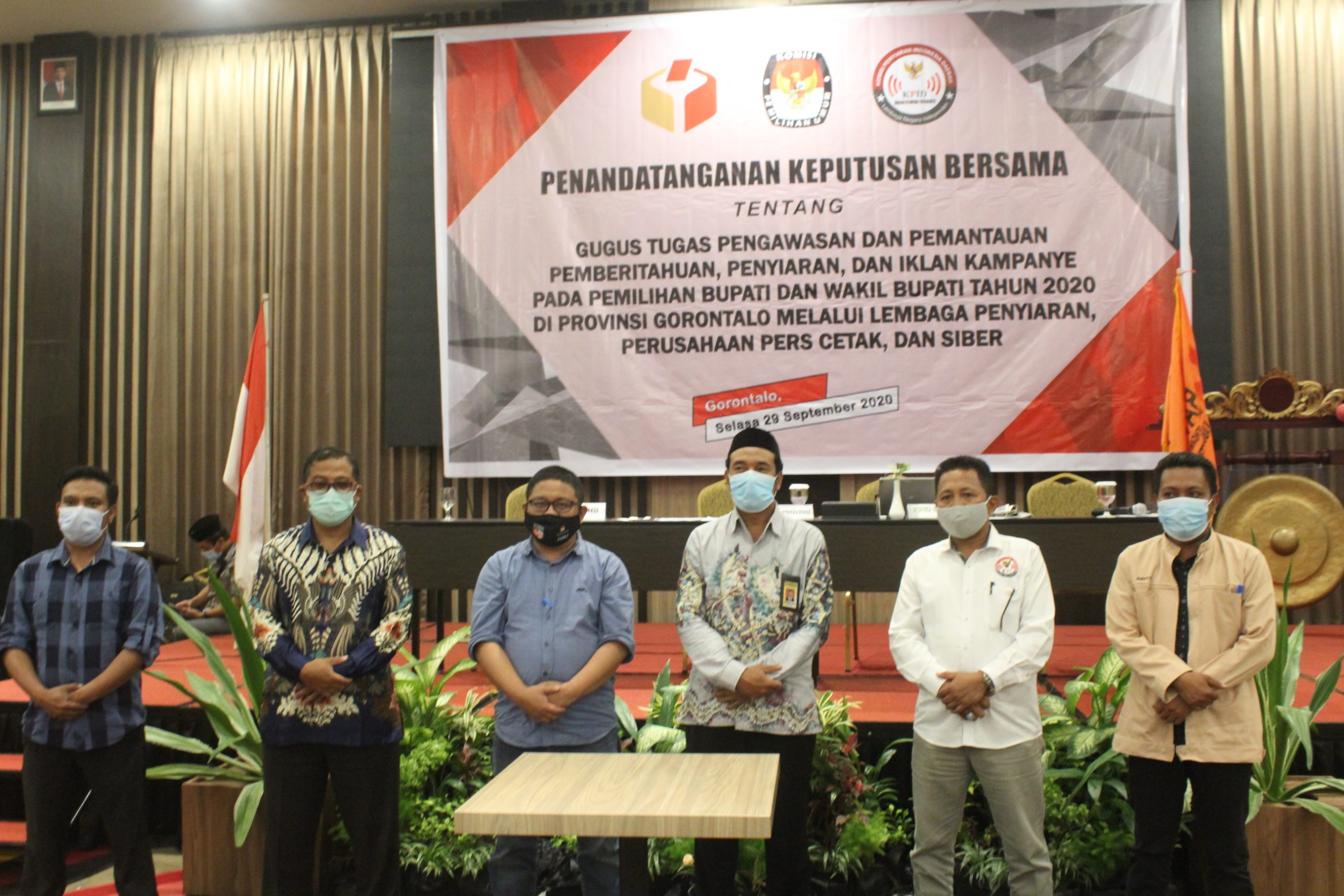 Menindaklanjuti Keputusan Bersama tentang Gugus Tugas Pengawasan dan Pemantauan Pemberitaan Penyiaran, dan Iklan Kampanye dalam Pilkada 2020 antara empat lembaga yakni Bawaslu RI, KPU RI, Dewan Pers dan KPI di Jakarta pada 28 September 2020, Bawaslu , KPU , dan KPI di Provinsi Gorontalo langsung membuat MoU tersebut pada Selasa (29/09/2020).