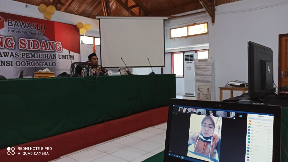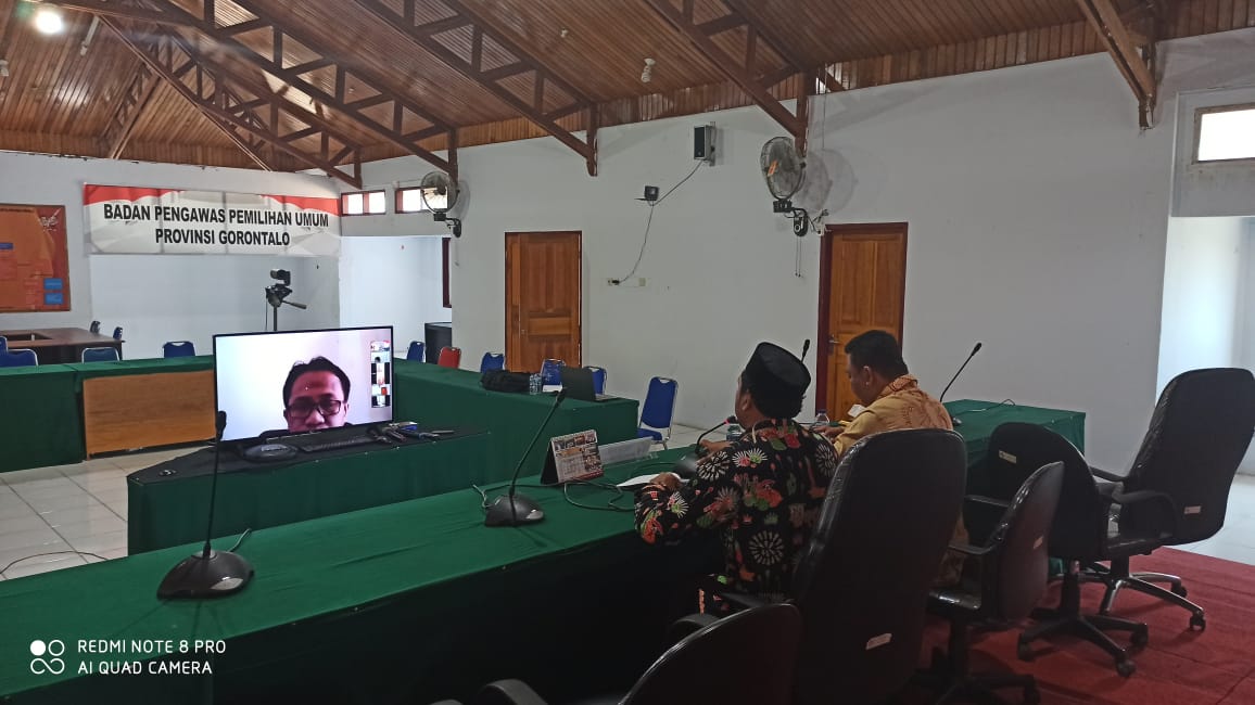 Bawaslu Provinsi Gorontalo gelar rapat internal melalui aplikasi Zoom Meeting terkait dengan menindaklanjuti Kebijakan Pengurangan Anggaran untuk penanggulangan Covid 19 pada Senin (13/04/2020).