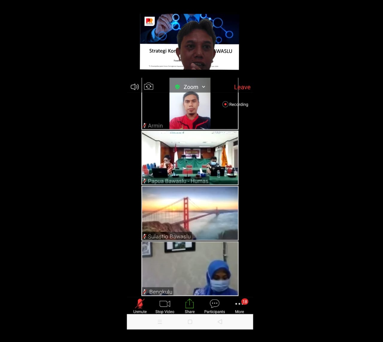 Bawaslu Provinsi Gorontalo mengikuti Bimtek Kehumasan melalui media daring miting zoom Kamis,11/06/2020.
