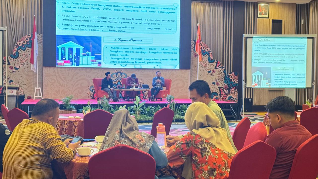 Lebih lanjut, ia mengungkapkan bahwa pasca-Pemilu 2024, tantangan baru turut mengemuka, termasuk wacana Bawaslu ad hoc serta kebutuhan reformasi regulasi kepemiluan. Menurutnya, dinamika ini menuntut agar Divisi Hukum dan Sengketa tetap relevan dalam menghadapi berbagai perubahan sistem kepemiluan di Indonesia.