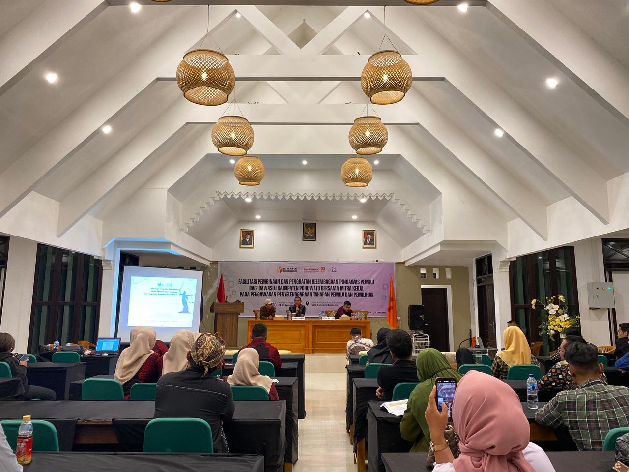 Pohuwato – Anggota Bawaslu Provinsi Gorontalo, Wahyudin Akili, menegaskan pentingnya peran masyarakat dalam memberikan masukan terhadap regulasi Pemilu mendatang. Hal itu disampaikannya saat membawakan materi pada kegiatan Penguatan Kelembagaan Pengawas Pemilihan Umum Bersama Mitra Kerja yang digelar Bawaslu Kabupaten Pohuwato di Villa Kencana Kab. Boalemo, Jumat (29/08/2025).