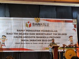 Gorontalo, Badan Pengawas Pemilihan Umum - Kepala Bagian Administrasi Bawaslu Provinsi Gorontalo Admira Wantogia,SE mengikuti Rapat Persiapan Pembekalan bagi Tim Seleksi dan Sekretariat Tim Seleksi Calon Anggota Bawaslu Provinsi periode 2022 - 2027.