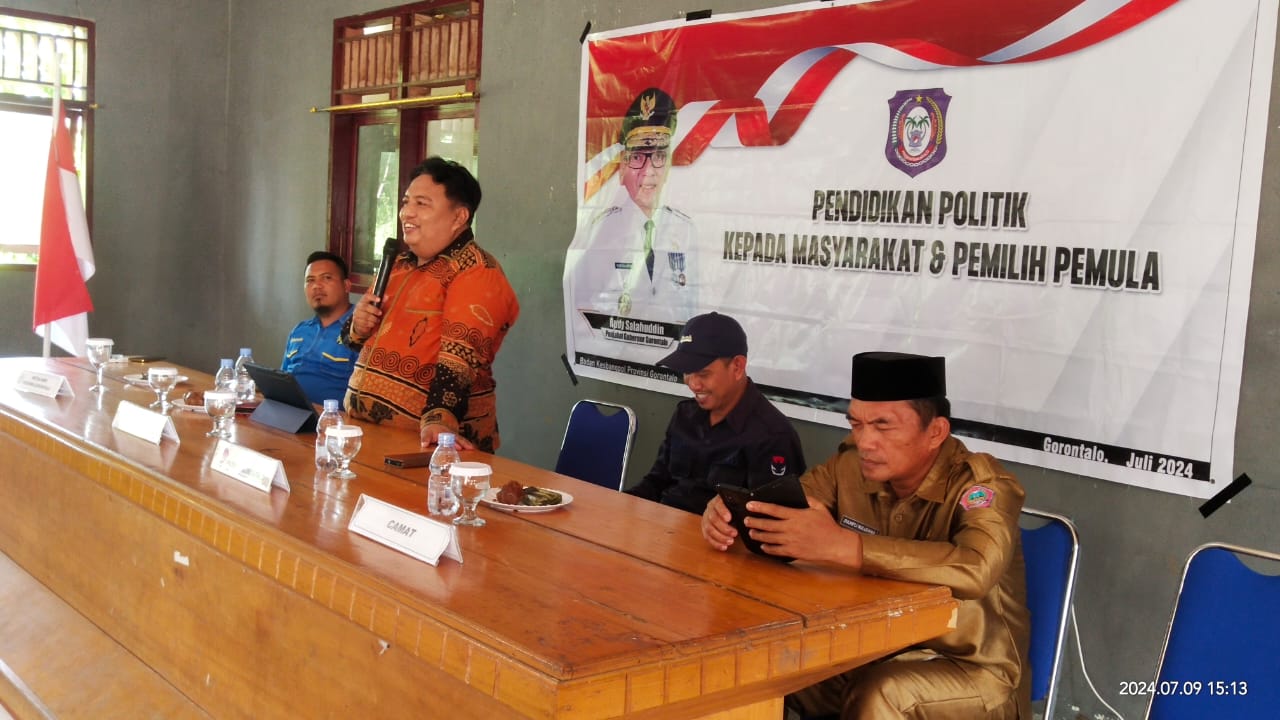 Pohuwato – Anggota Bawaslu Provinsi Gorontalo, Amin Abdullah, memberikan pemaparan penting pada kegiatan pendidikan politik yang diselenggarakan oleh Badan Kesbangpol Provinsi Gorontalo di Kecamatan Popayato, Selasa (09/07/2024). Kegiatan ini bertujuan memberikan pemahaman mendalam mengenai proses Pemilu kepada masyarakat dan pemilih pemula.