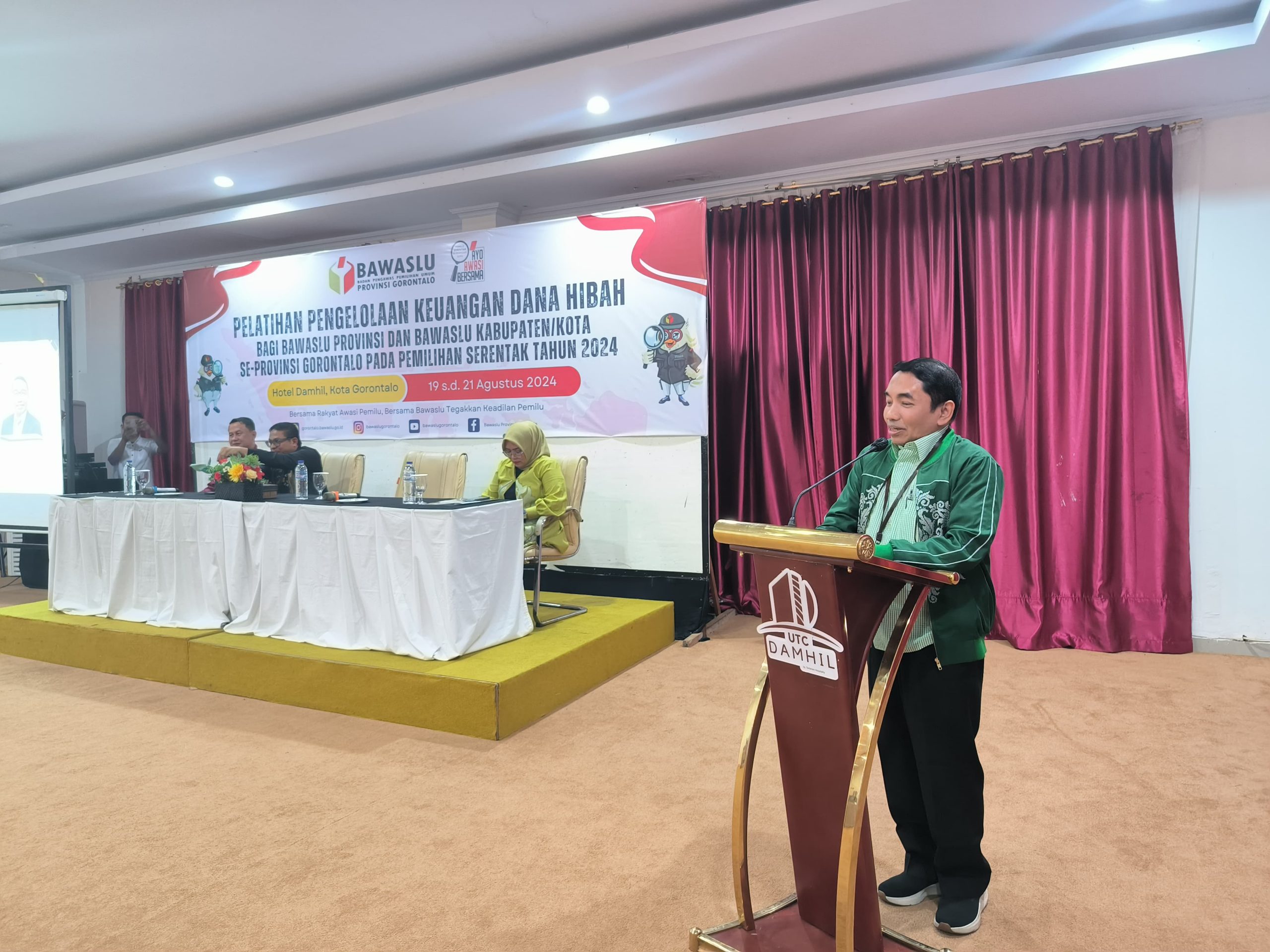 Gorontalo - Bawaslu Provinsi Gorontalo menggelar Pelatihan Pengelolaan Keuangan Dana Hibah bagi Bawaslu Provinsi dan Bawaslu Kabupaten/Kota se-Provinsi Gorontalo dalam rangka Pemilihan Serentak 2024. Kegiatan ini berlangsung di Hotel Damhil, Kota Gorontalo, pada Senin (19/8/2024).