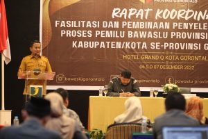 Gorontalo, Badan Pengawas Pemilihan Umum (Bawaslu) Provinsi Gorontalo menggelar Rapat Koordinasi Fasilitasi Dan Pembinaan Penyelesaian Sengketa Proses Pemilu yang berlangsung selama 2 (dua) hari 6 hingga 7 Desember 2022 di Grand Q Hotel Kota Gorontalo.