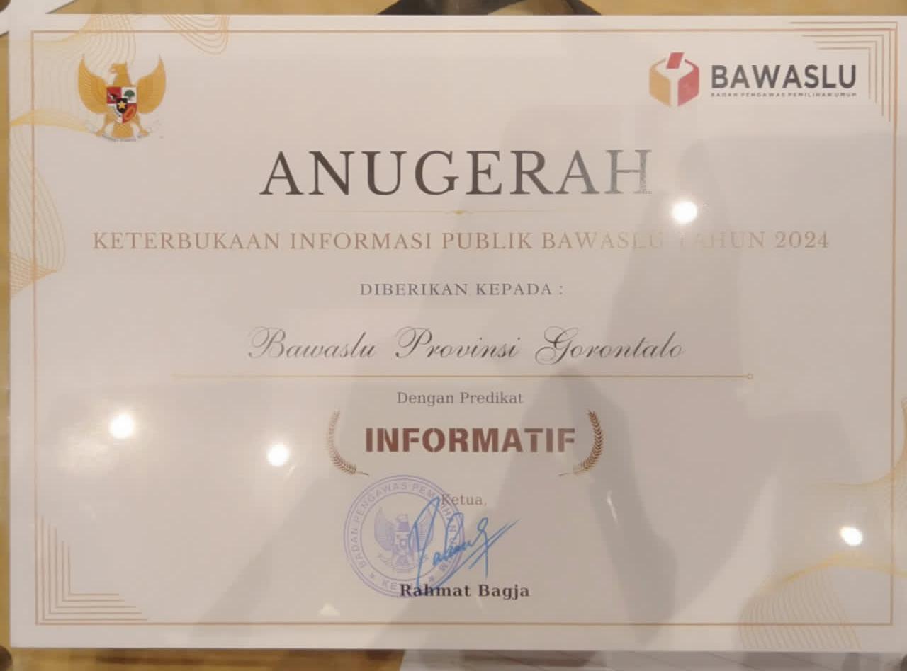 Penghargaan ini diberikan sebagai bentuk apresiasi terhadap upaya Bawaslu Provinsi Gorontalo dalam meningkatkan akses informasi publik, terutama dalam konteks pemilu dan Pemilihan.