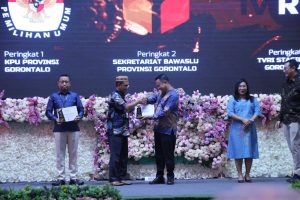Gorontalo, Badan Pengawas Pemilihan Umum Provinsi Gorontalo - Bawaslu Provinsi Gorontalo kembali meraih penghargaan peringkat kedua Treasury Award dari Kepala KPPN Gorontalo pada kategori Satuan Kerja dengan Implementasi Kartu Kredit Pemerintah (KKP) Tahun Anggaran 2023.