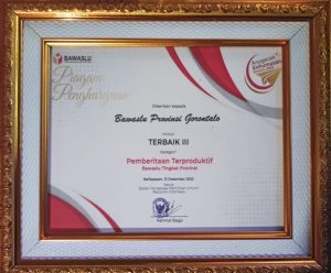 â€Alhamdulillah, Pada hari ini Bawaslu Provinsi Gorontalo berhasil meraih penghargaan Terbaik III dalam kategori Pengelolaan Pemberitaan Terproduktif Tingkat Provinsi. Hal ini menunjukan bahwa Bawaslu Provinsi Gorontalo terus berkomitmen dalam memberikan berita yang cepat, tepat, dan dapat dipercaya dan mudah-mudahan kedepanya akan semakin baik lagi†pungkasnya